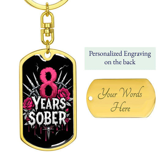 8 Year Sober Dog Tag Keychain - Personalized Sobriety Milestone Gift