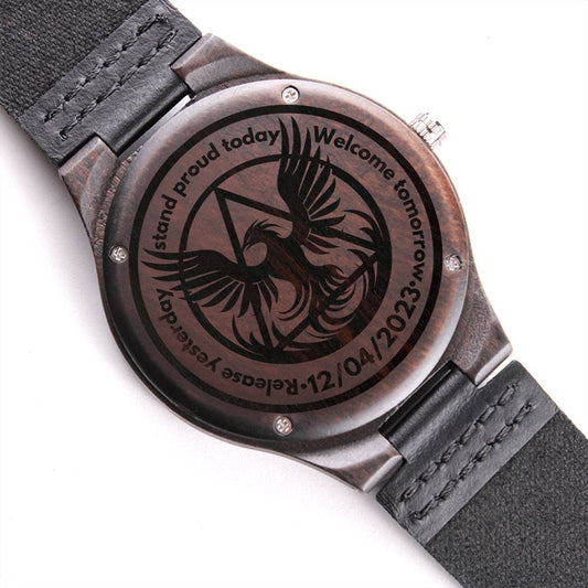 Engraved Wood Watch with Sobriety Phoenix | Rustic Gift for Milestones & Recovery