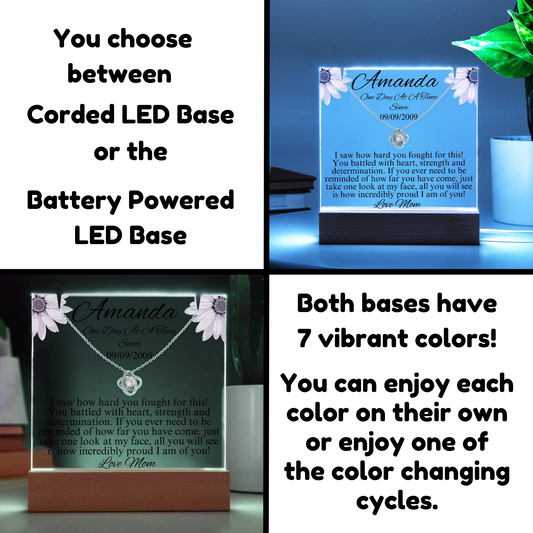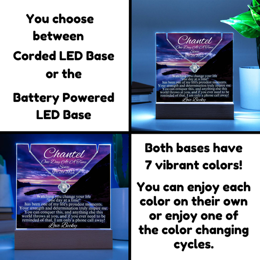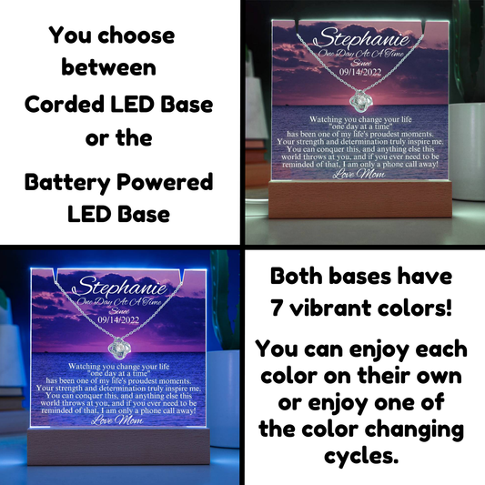 LED Sobriety Gift with Necklace Set ~ Customize Sobriety Date and names ~ One Day At A Time Set for her
