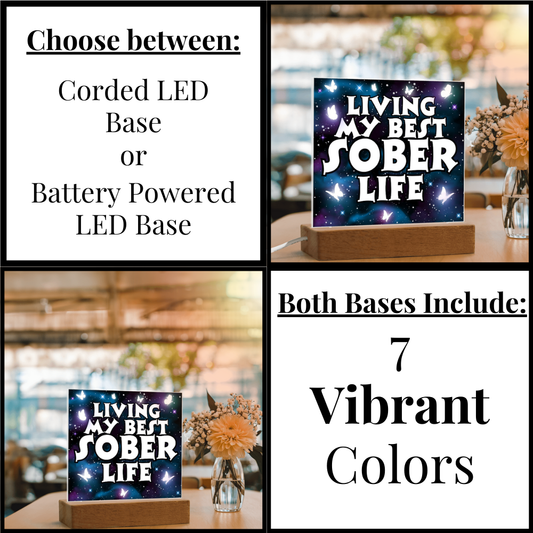 Living My Best Sober Life" LED Square Acrylic Plaque