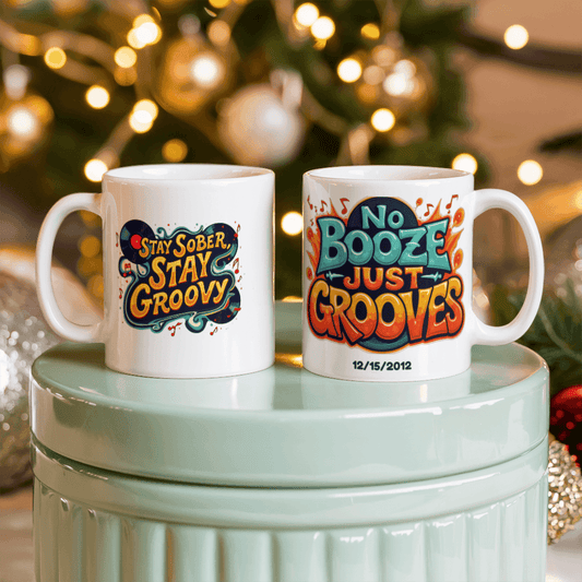 NO BOOZE JUST GROOVES! Stay sober Stay Groovy! Recovery Mug With Custom Sobriety Date added