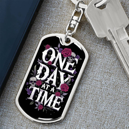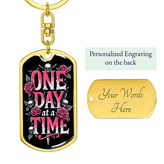 Personalized "One Day at a Time" Dog Tag Keychain | Sober Gift for Recovery Milestones
