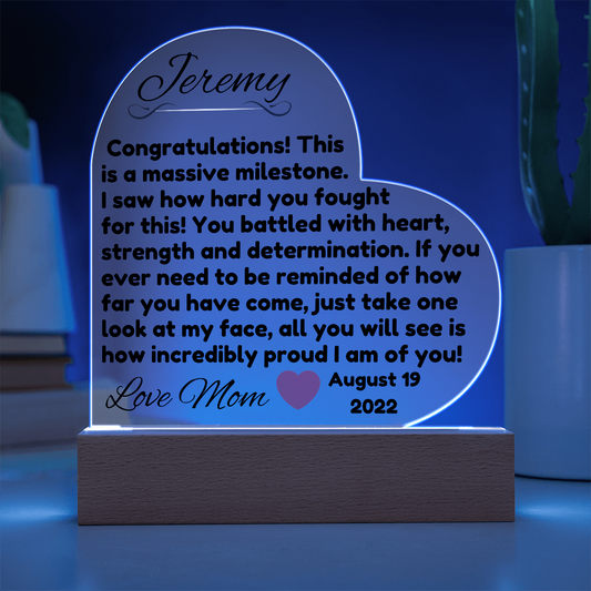 Personalized LED Heart Acrylic Plaque - Sobriety Gift with Custom Name & Date