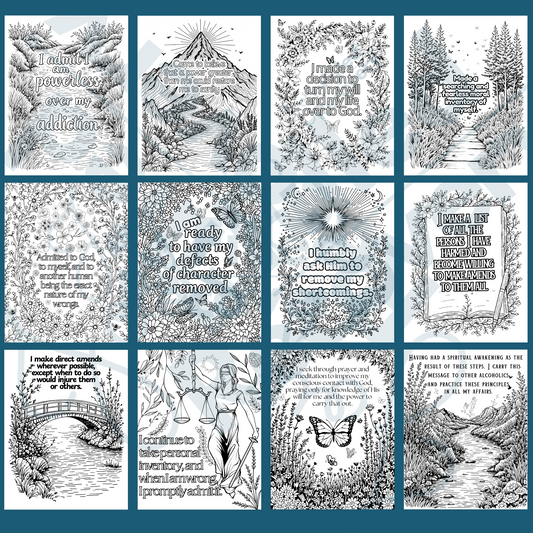 12-Step Recovery Coloring Pages – Digital Download for Reflection