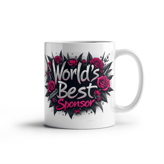 Personalized World's Best Sponsor Mug | Edgy Floral Design | Thank You Gift for Sobriety Sponsor | Custom Ceramic Coffee Cup
