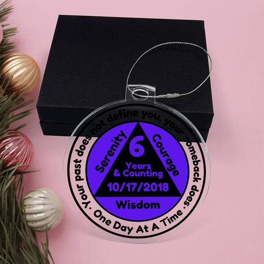 Personalized Sobriety Date Gift Ornament - Serenity, Courage and Wisdom ~ One Day At A Time AA Birthday