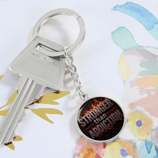 Stronger Than Addiction Keychain — Personalized Back Engraving