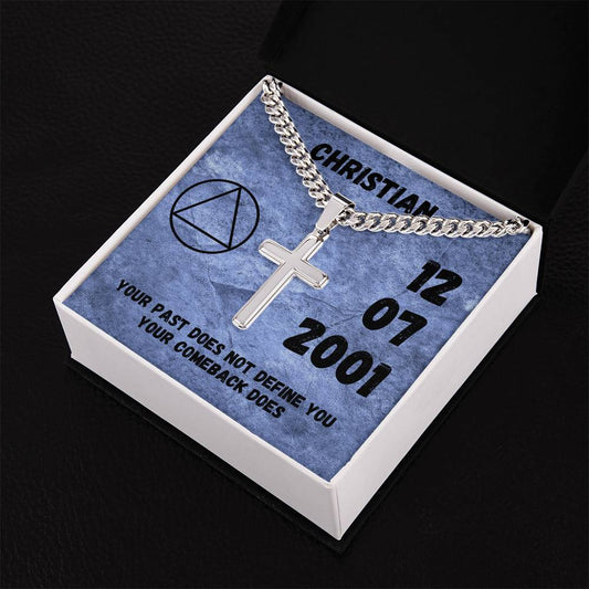 Custom Sober Birthday Card with Engraved cross necklace