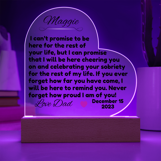 Custom Date Acrylic Heart ~ Sobriety Gift for Recovery