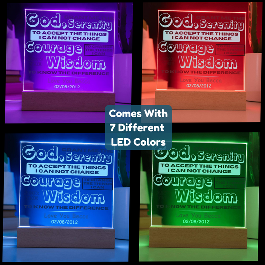 Custom Sobriety Date and Message with Serenity Prayer on LED Acrylic Plaque
