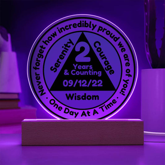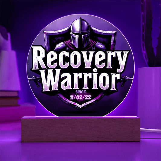 Recovery Warrior LED Circle Plaque – Customizable Sobriety Date | Illuminate Your Journey