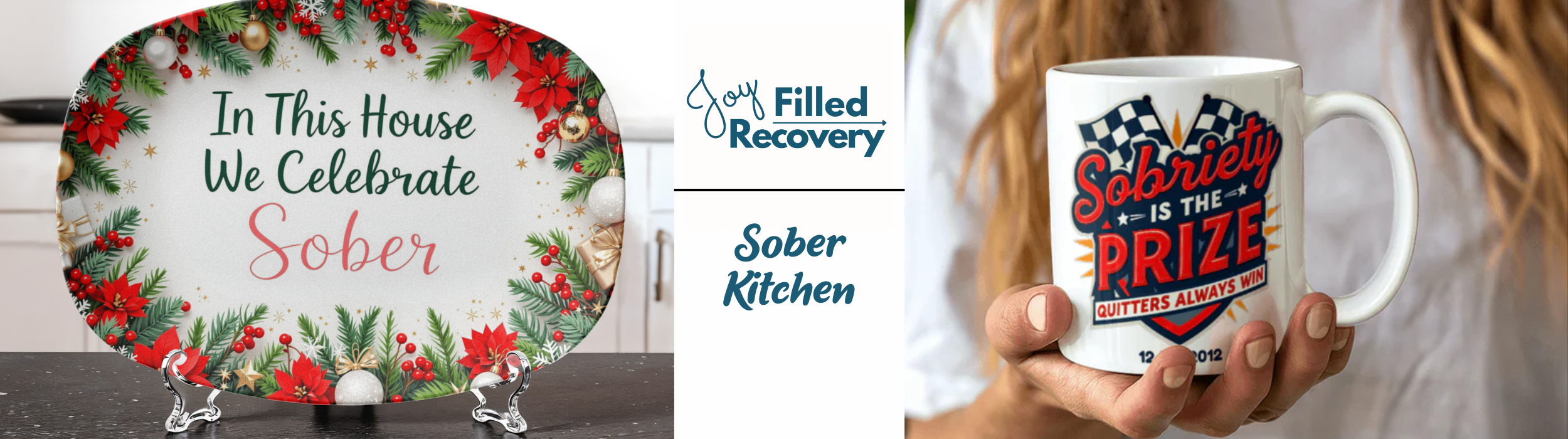 Meaningful mugs, plates, and kitchen gifts that celebrate your loved one’s sobriety every day.