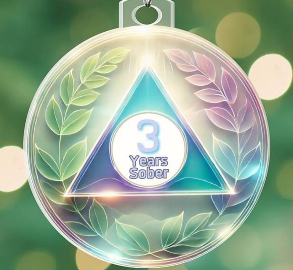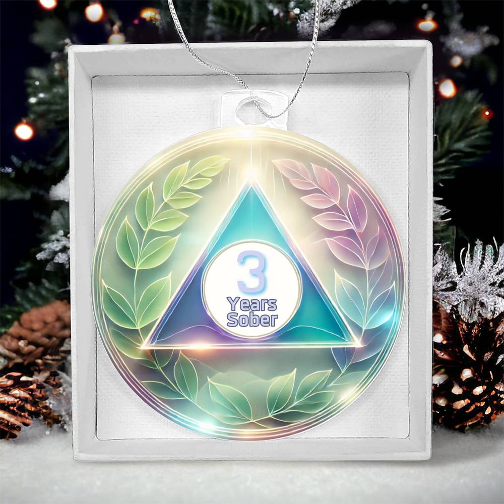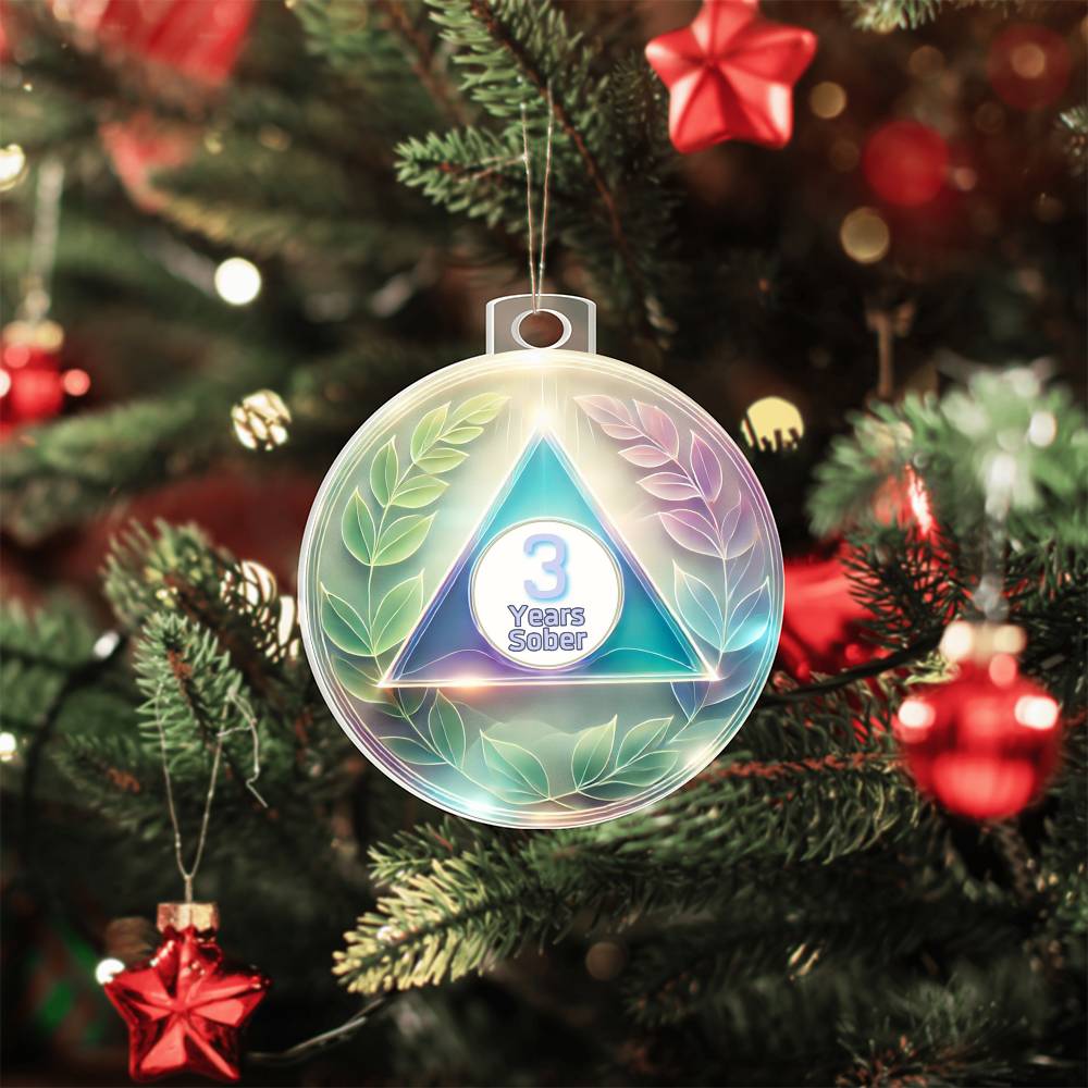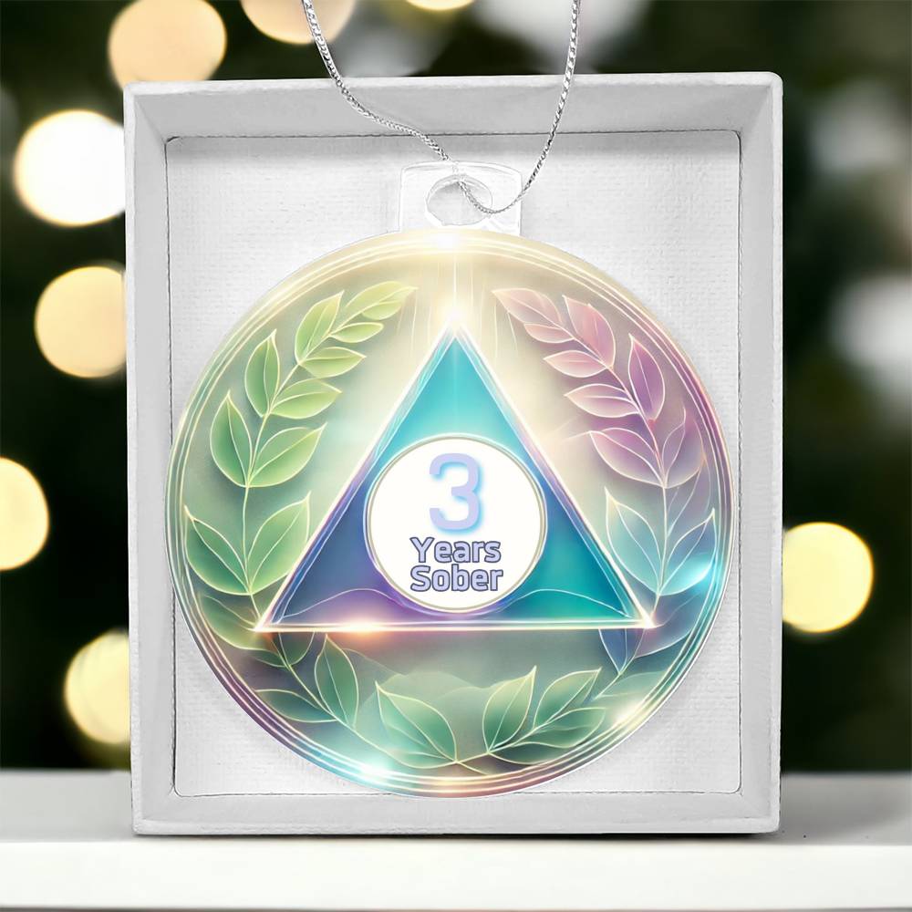 🌿 Front of the Ornament: Displays a tranquil, pastel-toned design with the words "3 Years Sober" within the AA triangle, customizable to any year or message that holds significance.