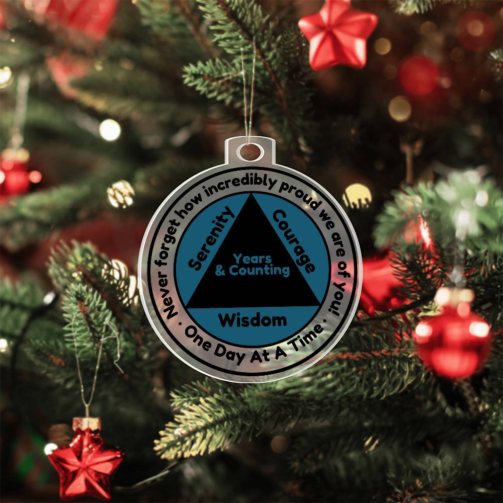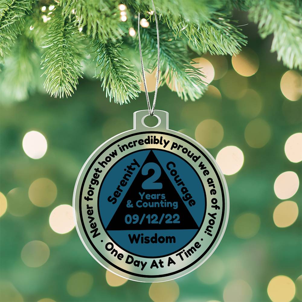 Create a one of a kind gift that celebrates how far they have come. Our Personalized Acrylic Ornament is constructed from high quality acrylic and features a unique, vibrantly printed design. This would make an ideal gift for your beloved partner, family members, or dear friends on special occasions like Christmas, sobriety birthdays, or any event where you want to encourage them on their journey.