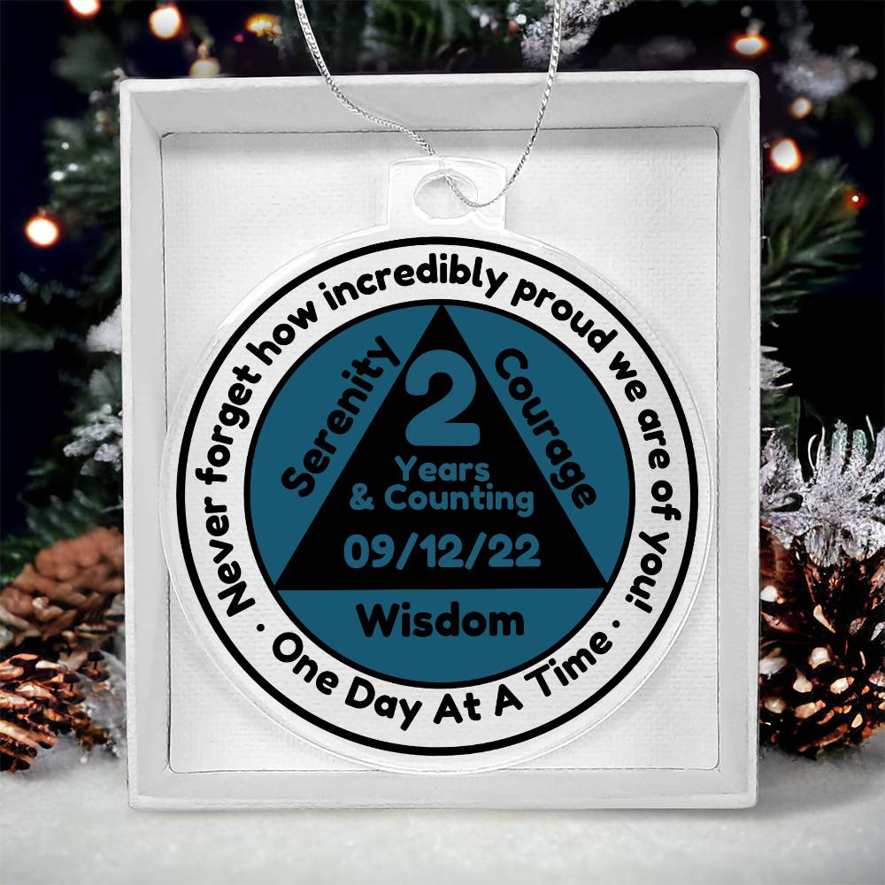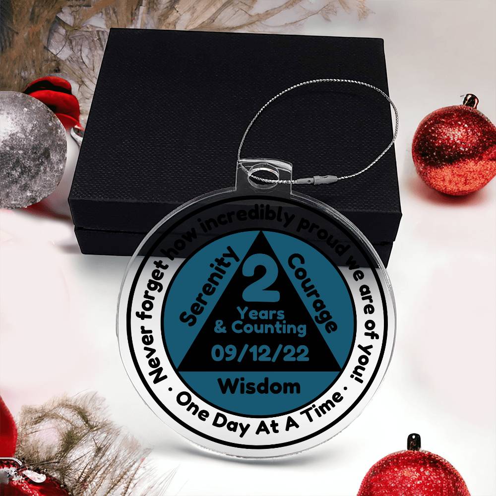 1-65 Years Sobriety Date Ornament - Celebrating Recovery One Day At A Time