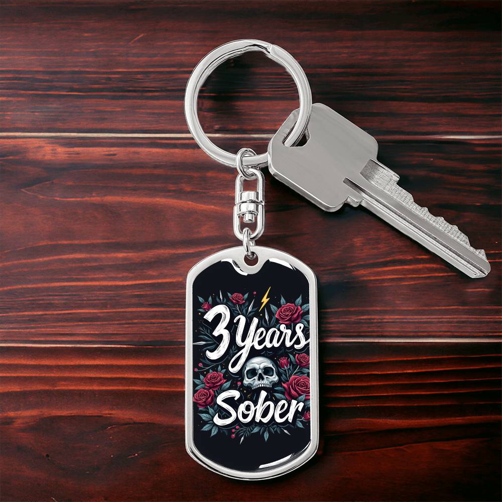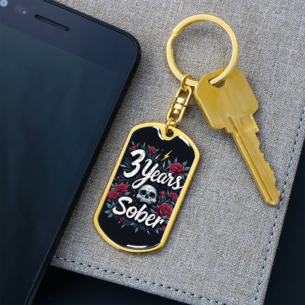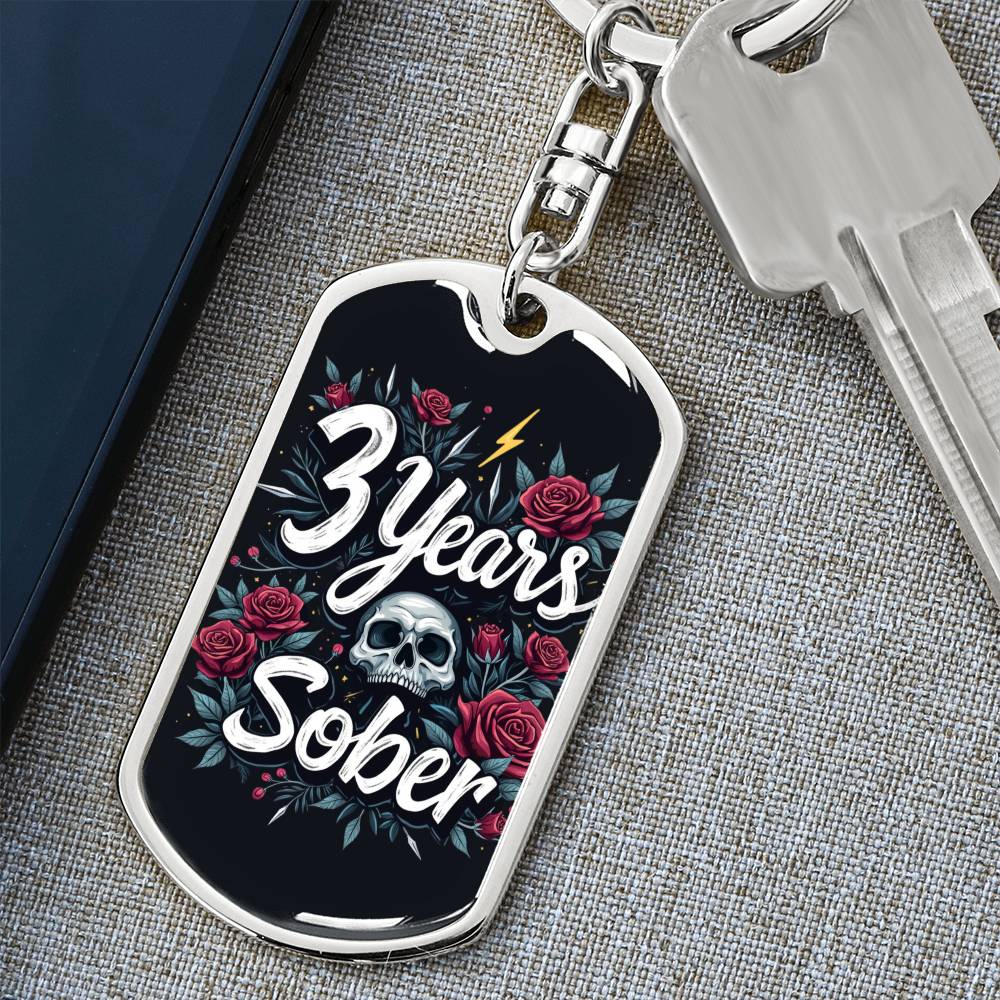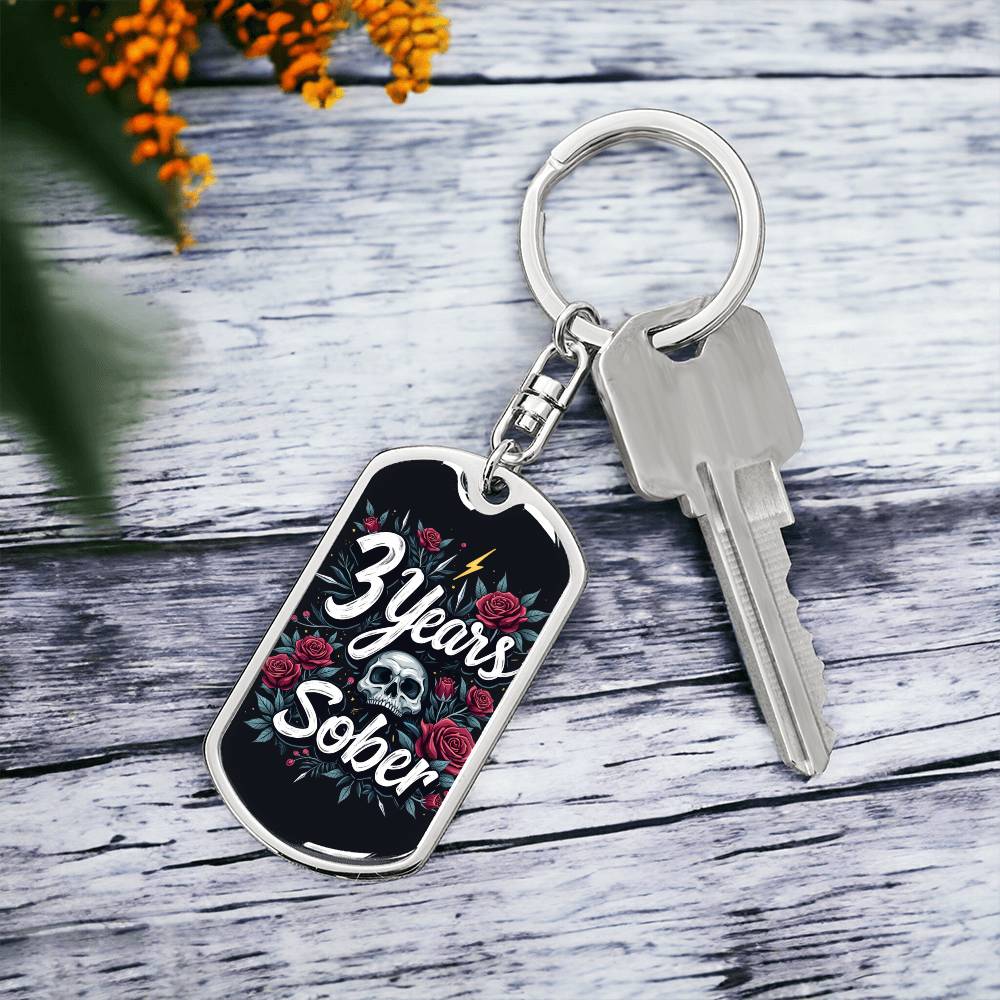 3 Year Sober Dog Tag Keychain - Personalized Sobriety Milestone Gift