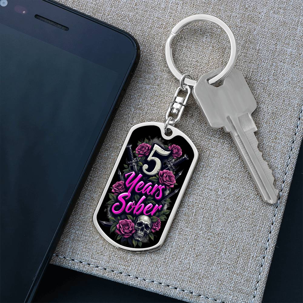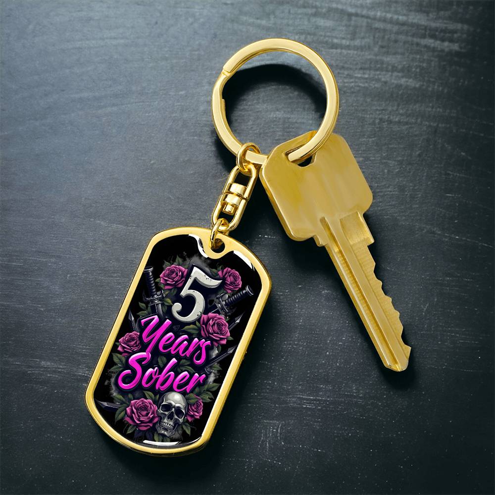 🌹💀 Celebrate 5 Years of Recovery with This Edgy Keychain! 💀🌹