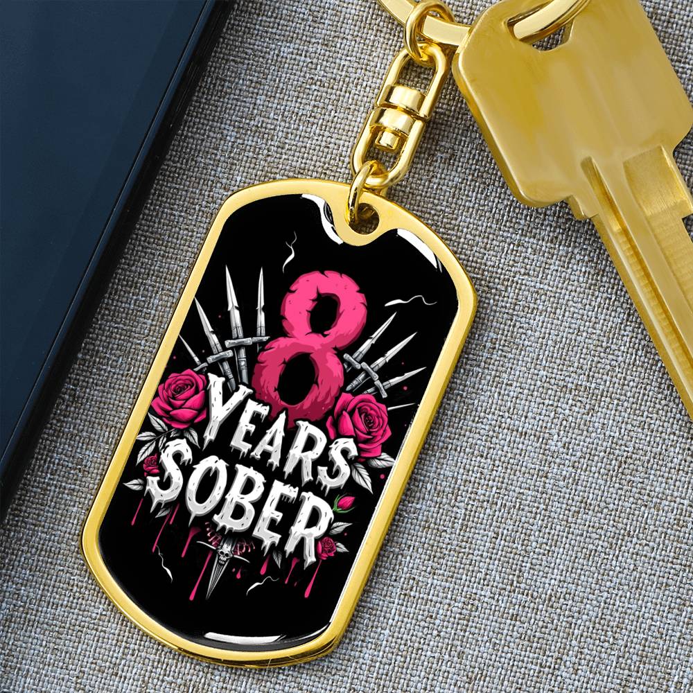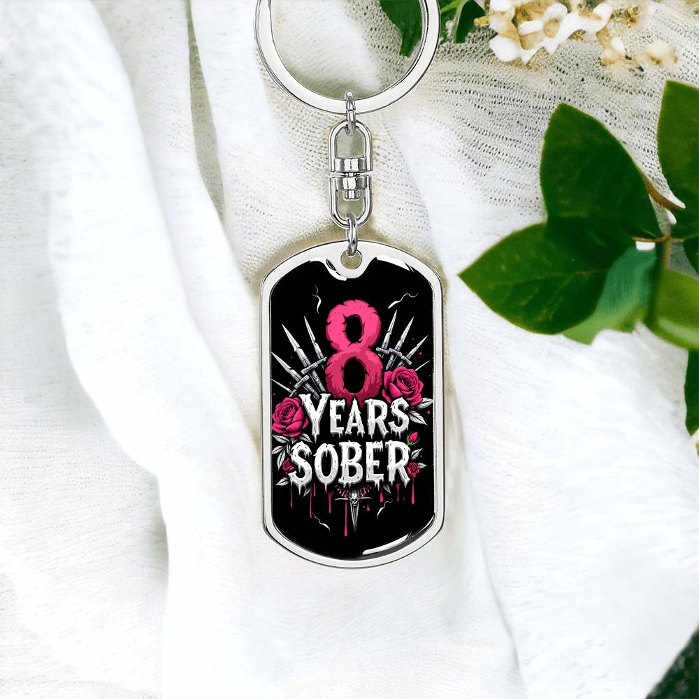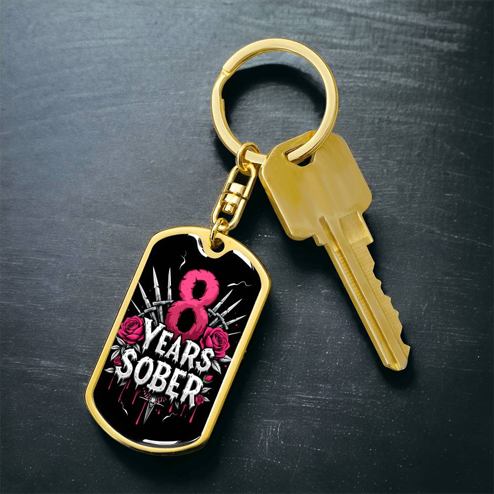 ⚔️ 8 Years Sober Dog Tag Keychain ~ A Symbol of Strength and Determination ⚔️