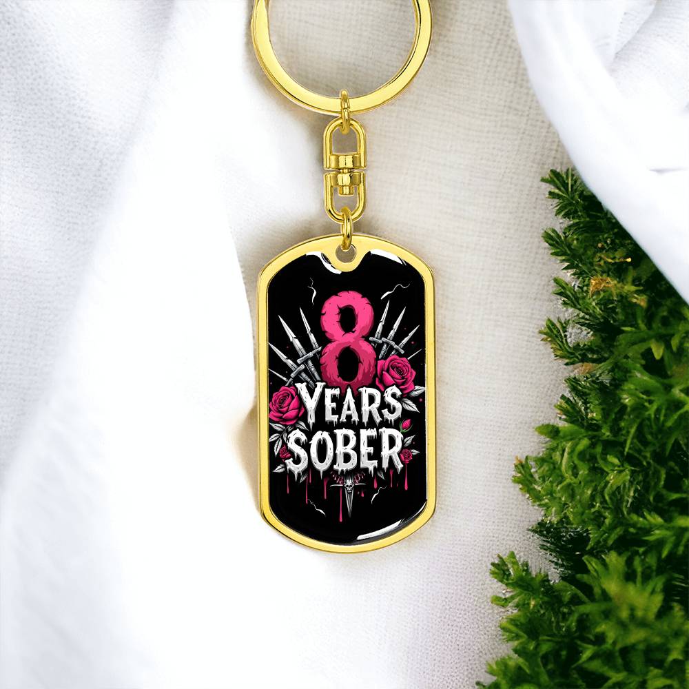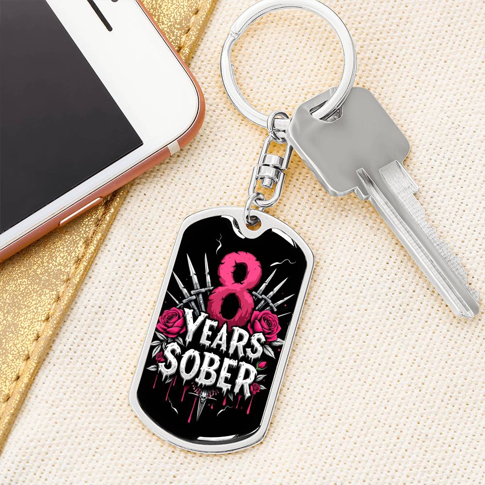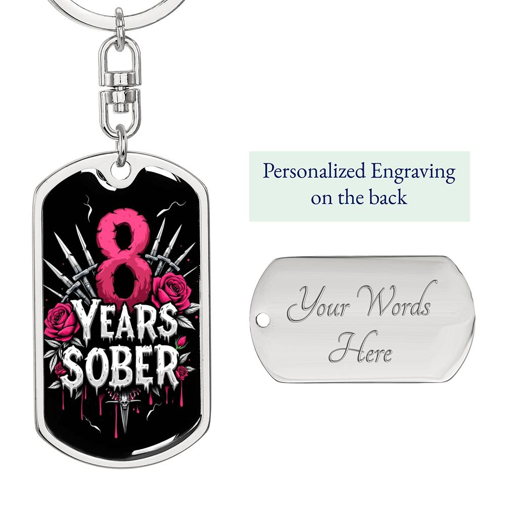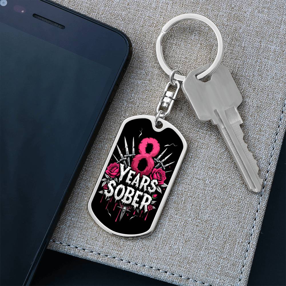 8 Year Sober Dog Tag Keychain - Personalized Sobriety Milestone Gift