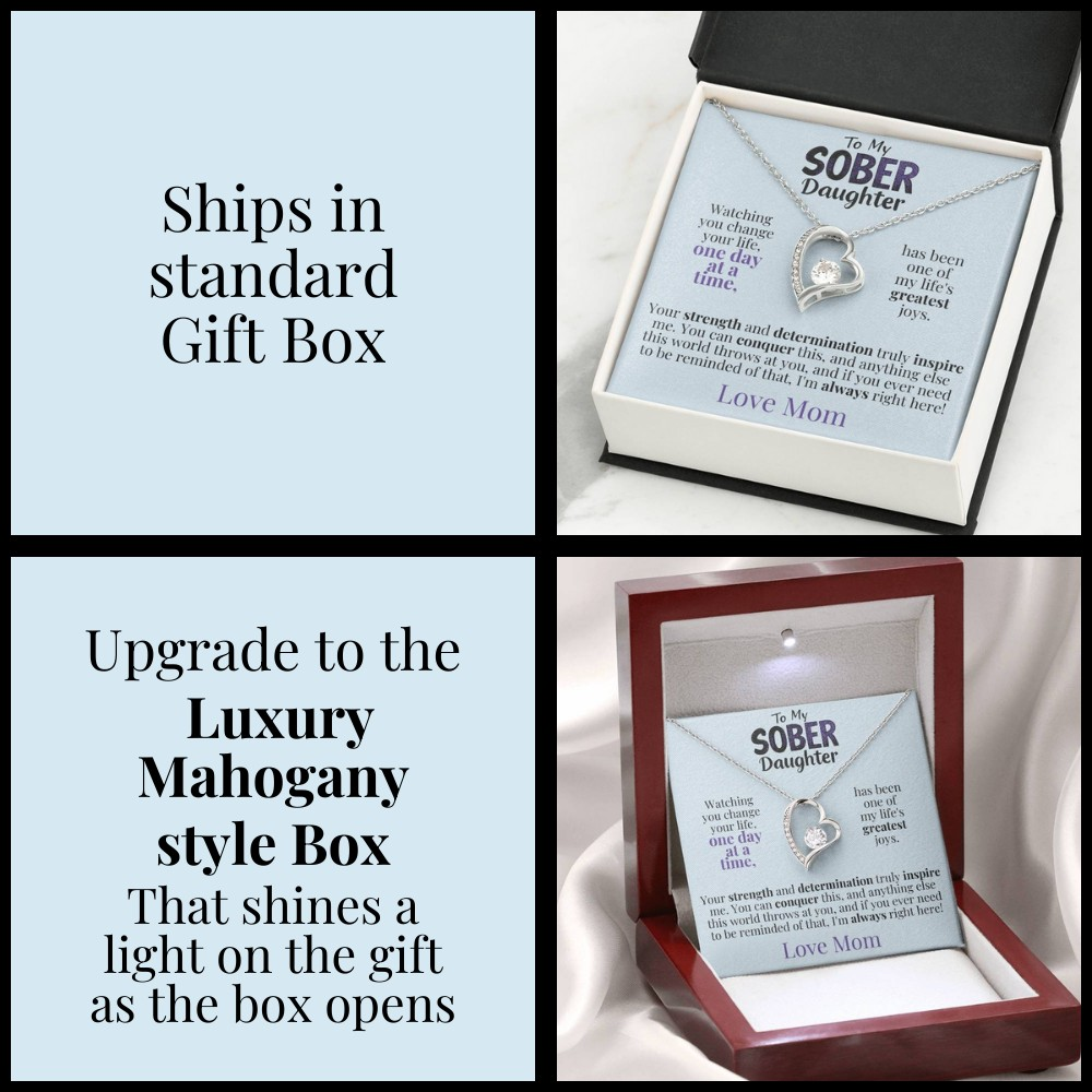 This stunning Forever Love Necklace is a heartfelt way to honor your daughter’s incredible sobriety journey. Designed to symbolize the bond between mother and daughter, this timeless piece reflects the courage, determination, and love that have carried her through her path to recovery.