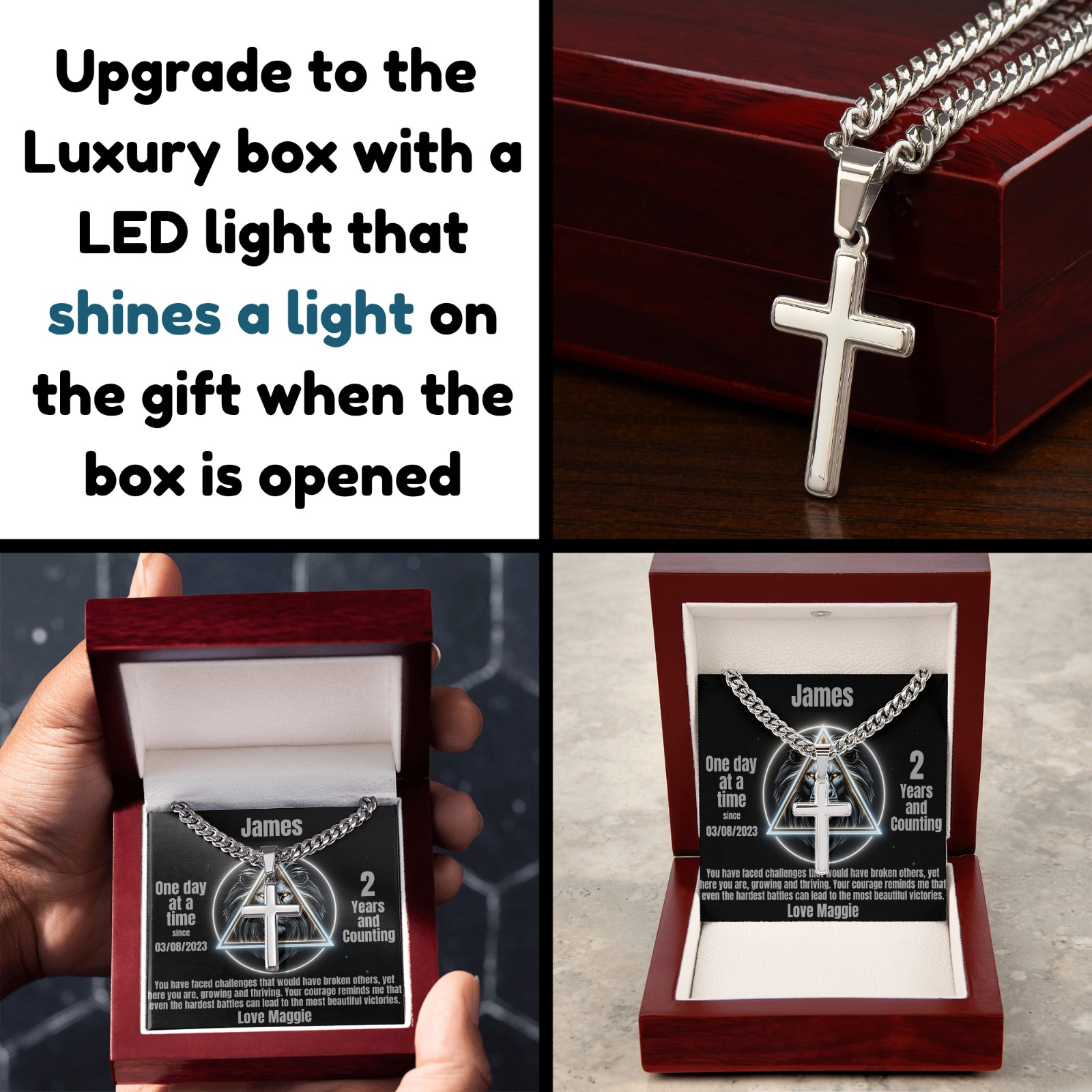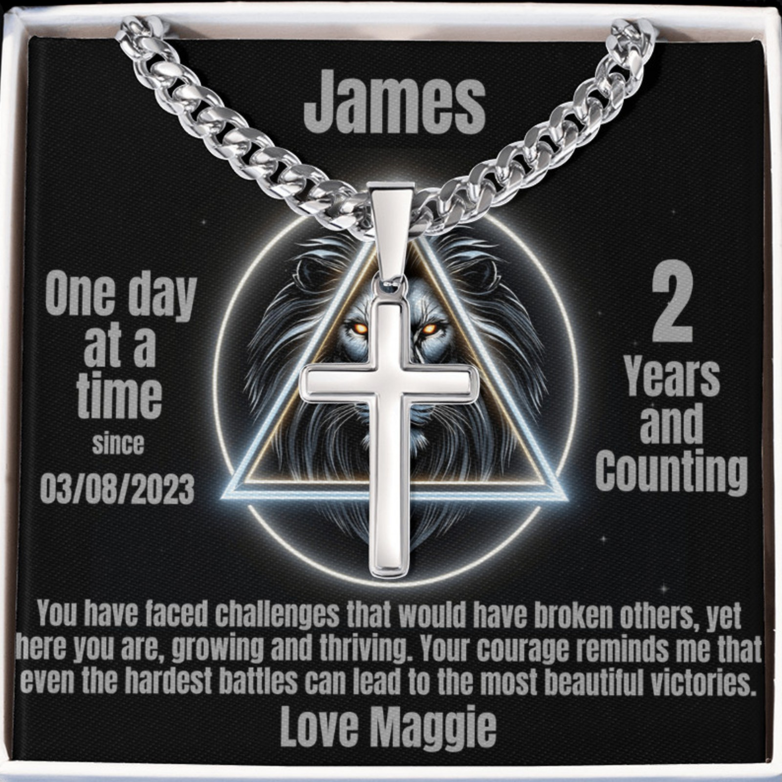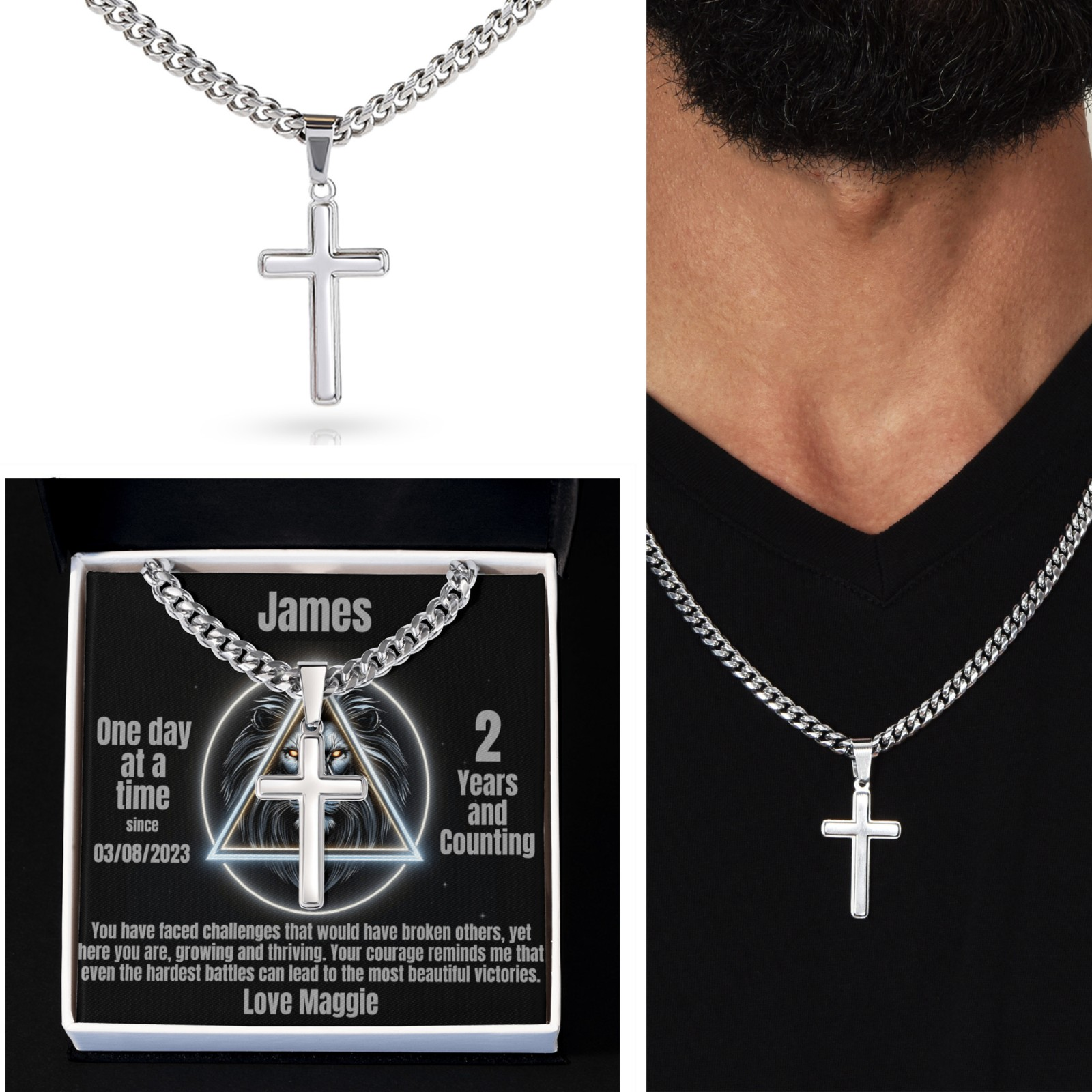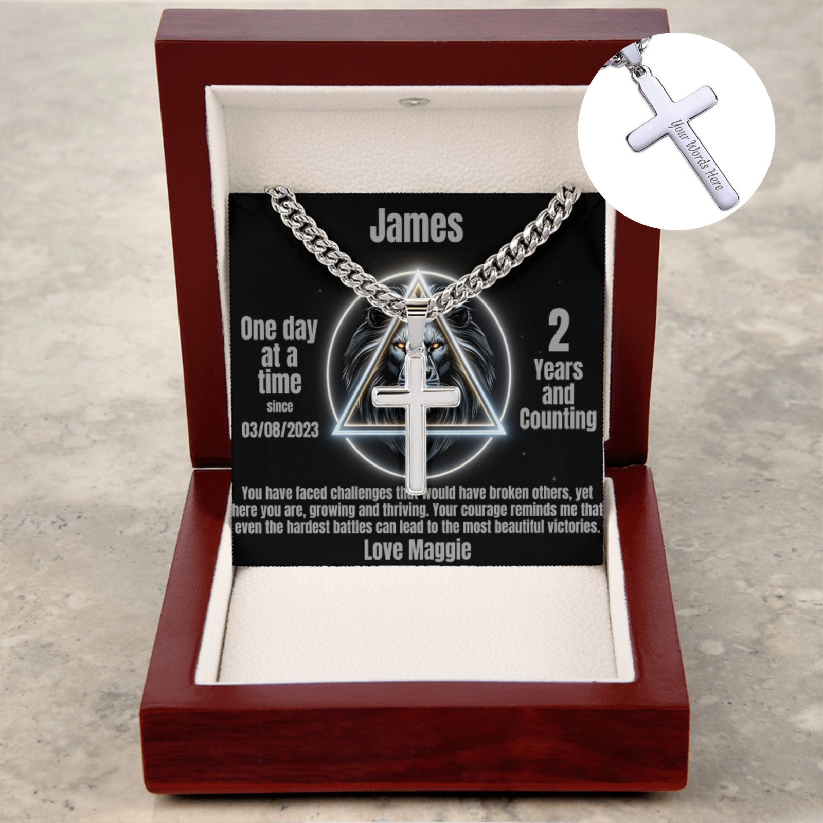 • Back of Cross Pendant: Add up to 20 characters—perfect for a sobriety date, scripture, or a short heartfelt message.