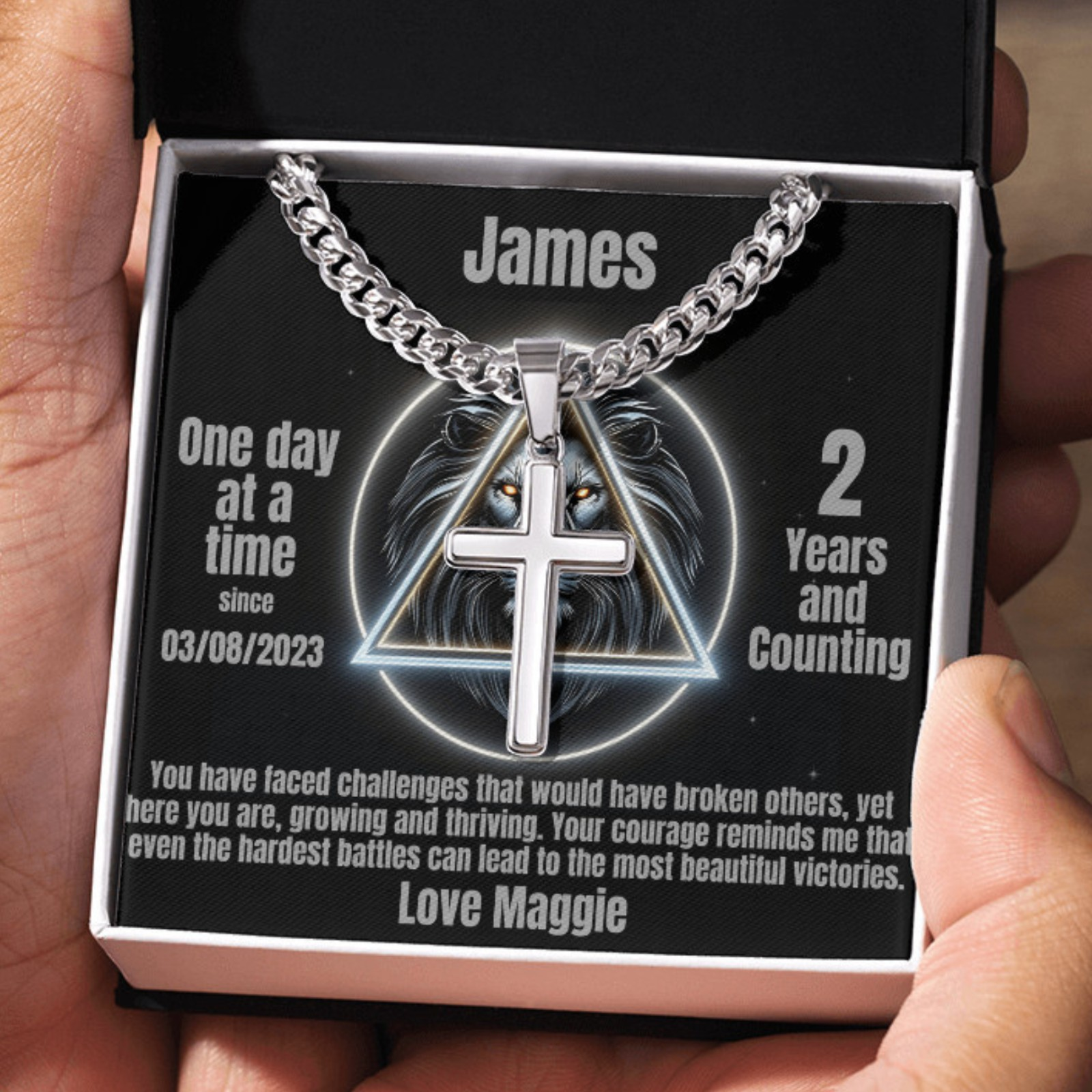 ✨ Celebrate strength, faith, and milestones with this deeply personal and meaningful cross necklace. 💖 Designed to honor a journey of recovery or faith, this keepsake combines a polished cross pendant with a customizable message card for a truly one-of-a-kind gift.