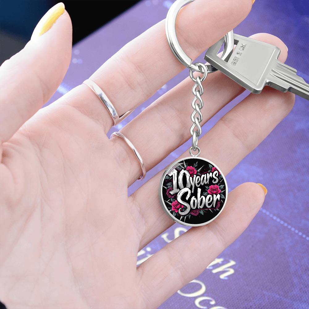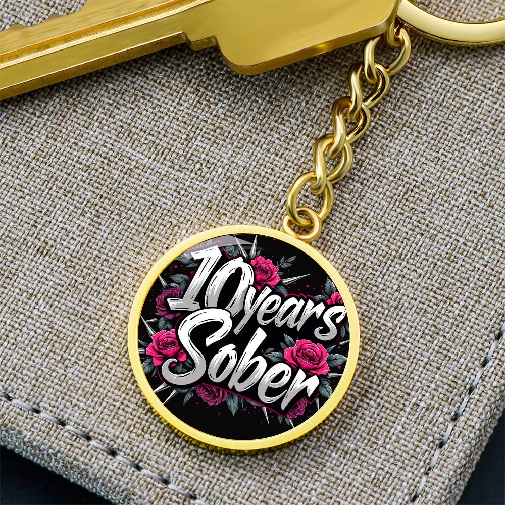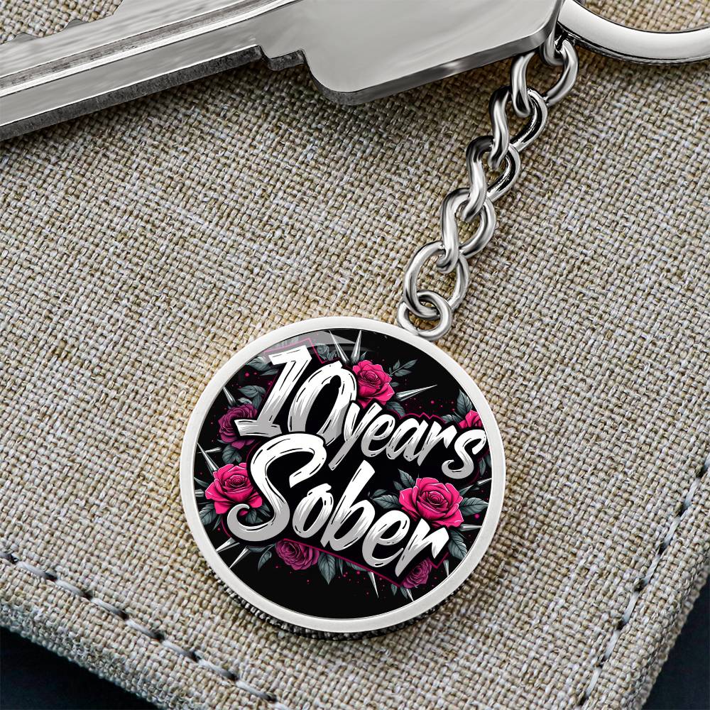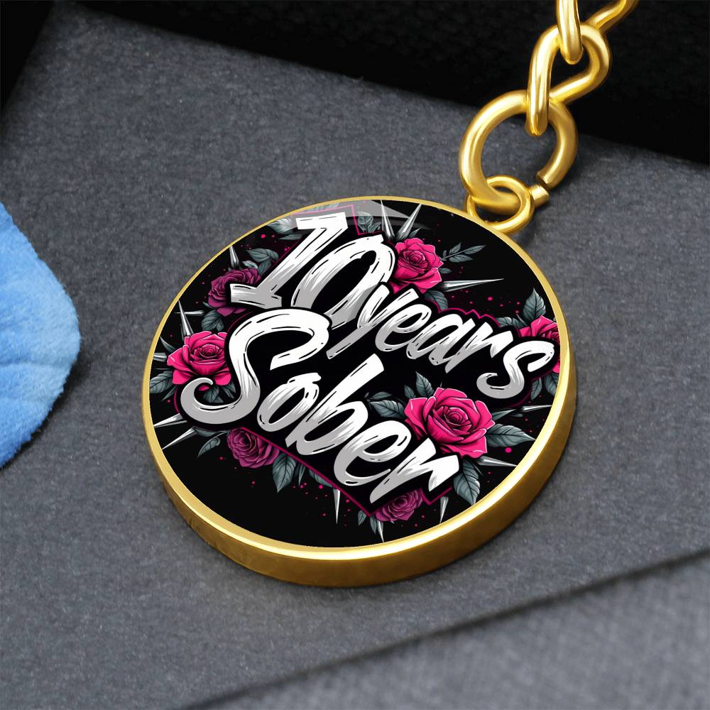 🌹 10 Years Sober Circle Keychain ~ A Bold Celebration of Resilience 🌹