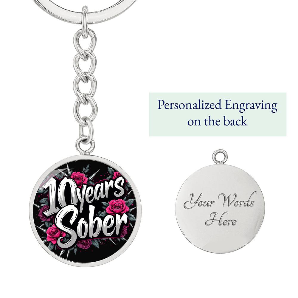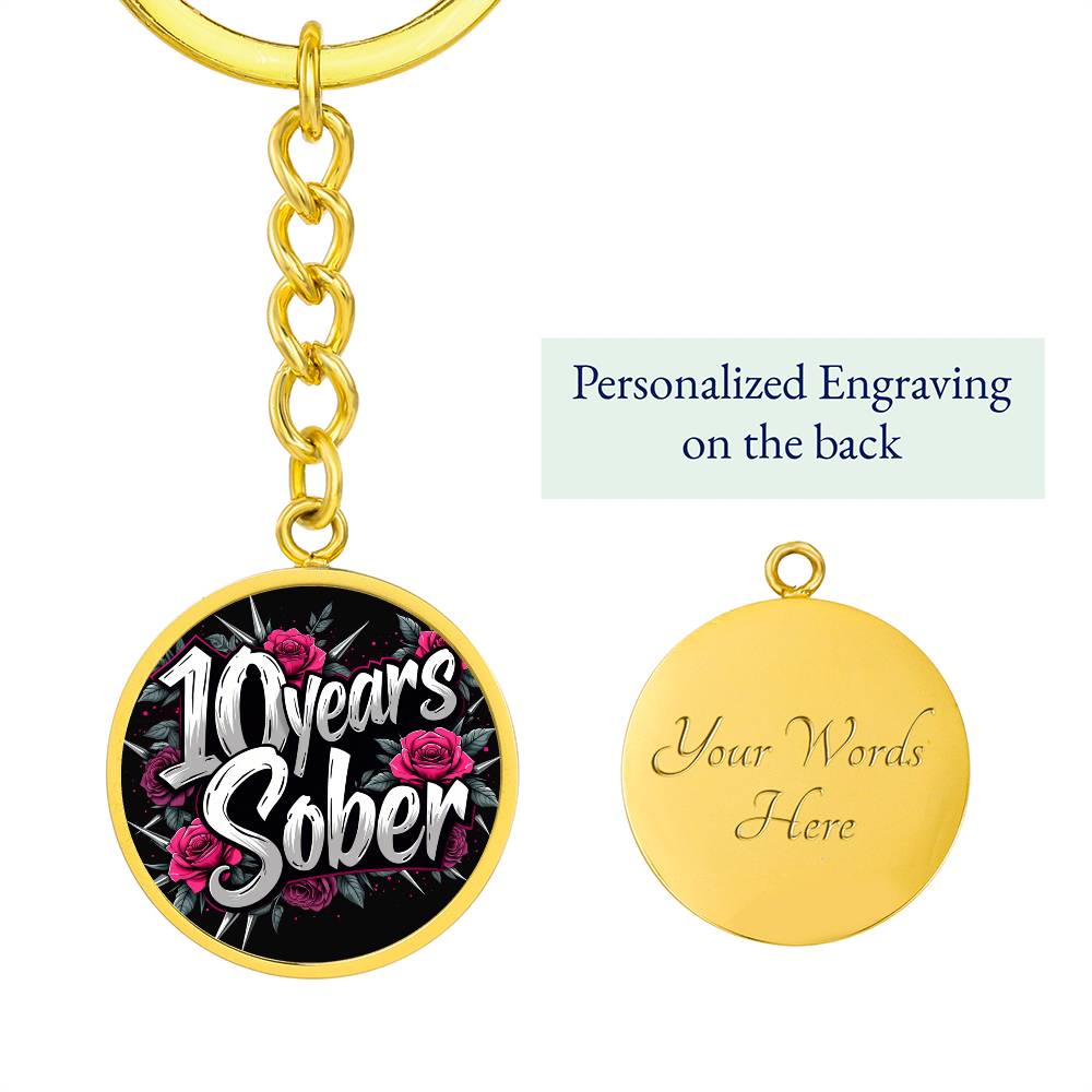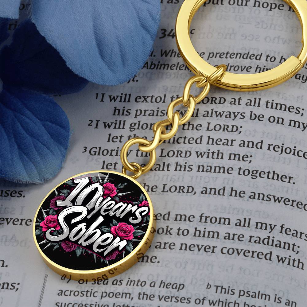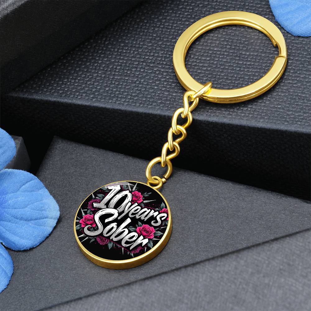 🌹 10 Years Sober Circle Keychain ~ A Bold Celebration of Resilience 🌹