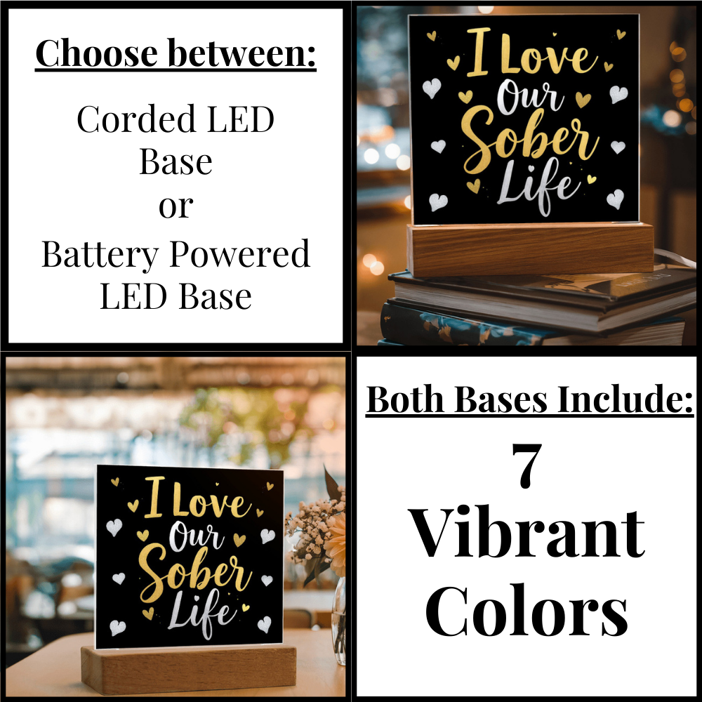 💖 Let them know just how much it means to you that you're walking this incredible sober journey together. "I Love Our Sober Life" is more than just a phrase—it’s a celebration of the resilience, love, and growth you’ve both shared. Sobriety is a powerful new chapter, and this LED Acrylic Plaque is the perfect way to honor how far you’ve come as a couple.