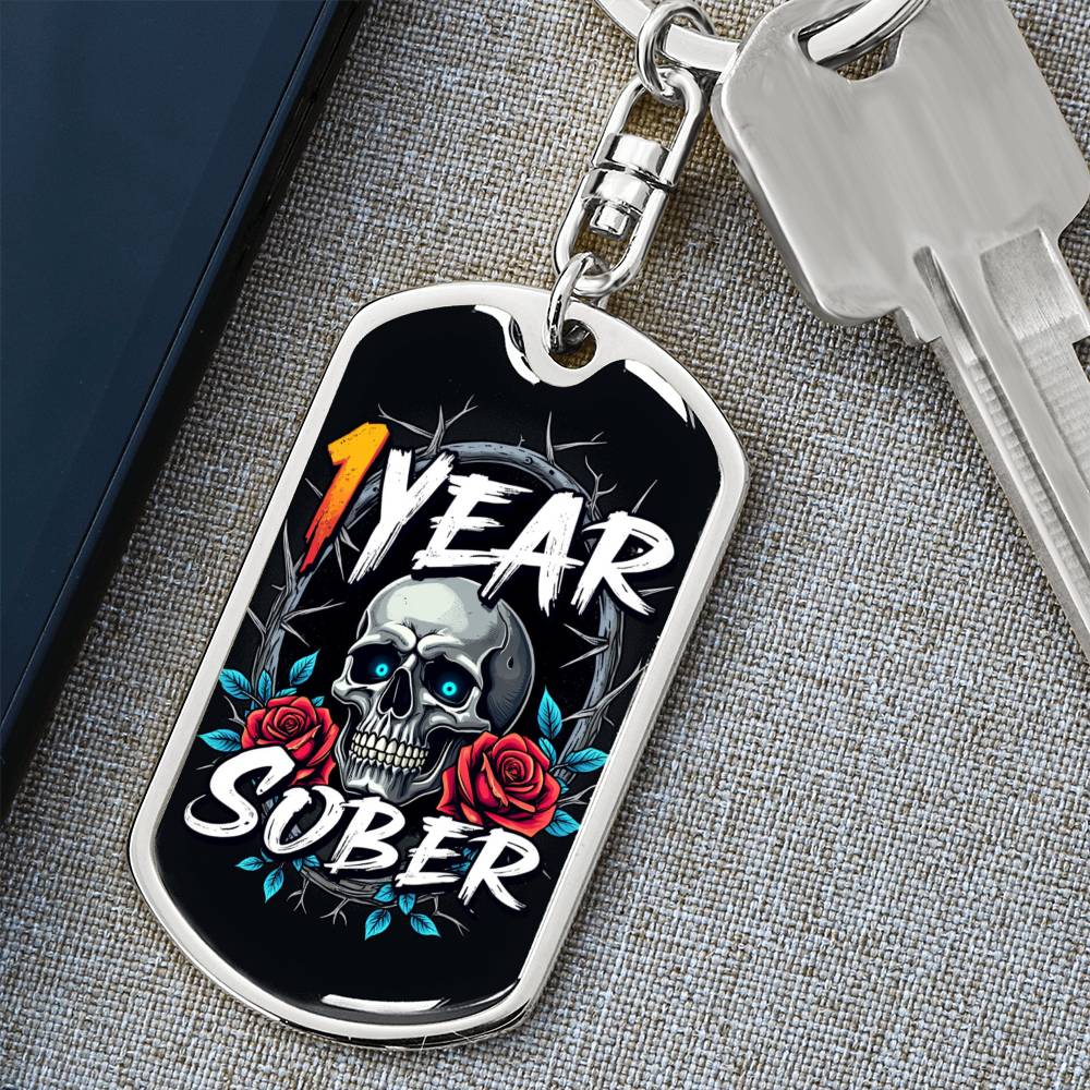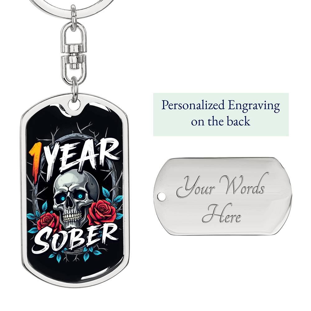 🌹💀 1 Year Sober Custom Keychain ~ Sobriety Milestone Gift 💀🌹
