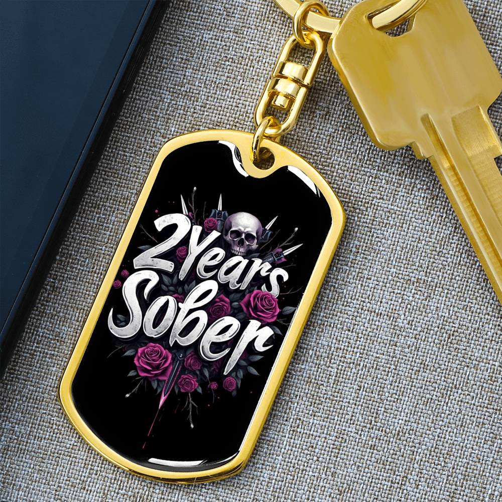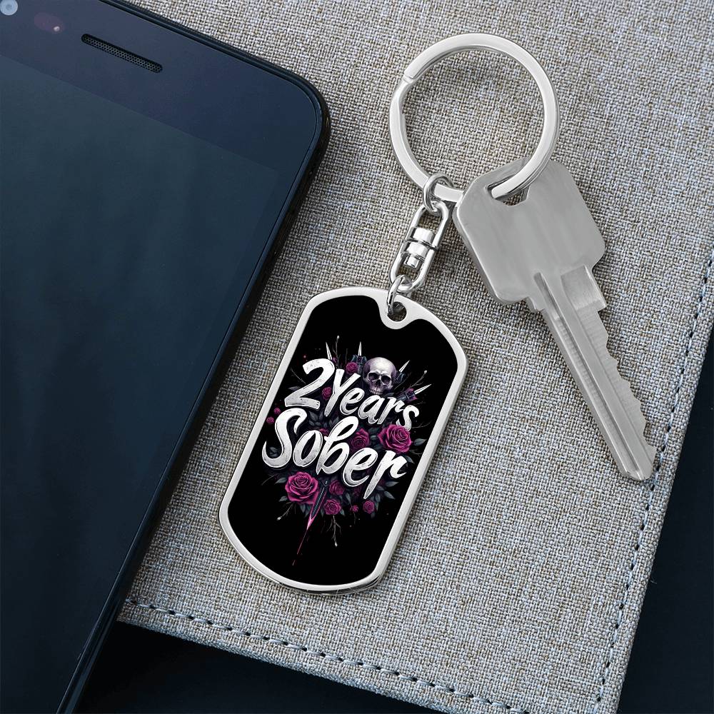 Custom 2 Years Sober Keychain - Edgy Design with Personalization for Recovery Milestones