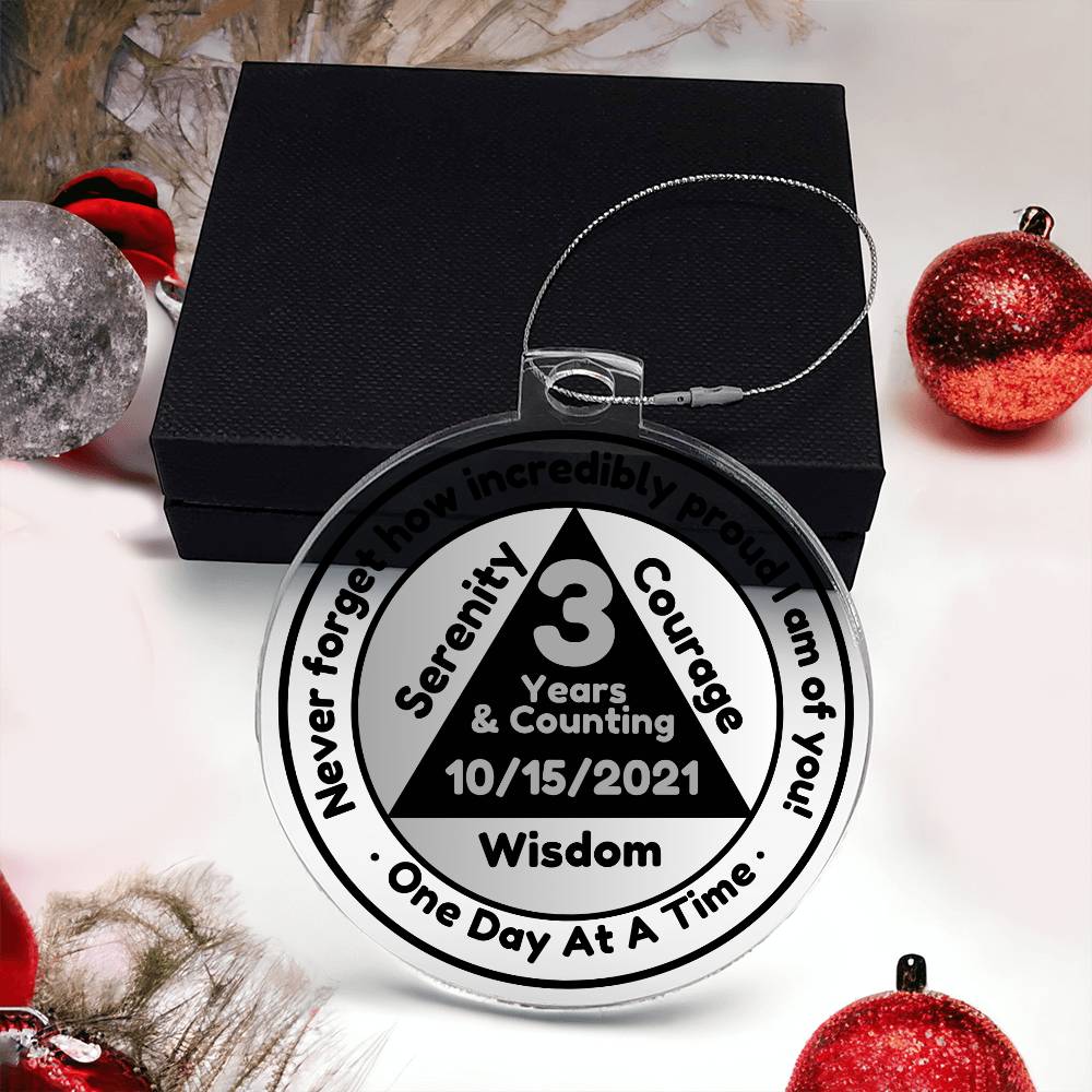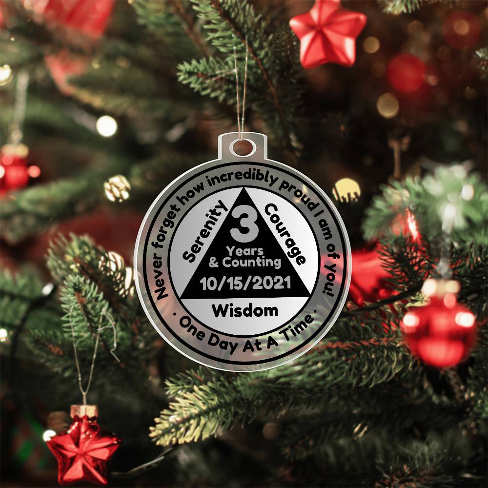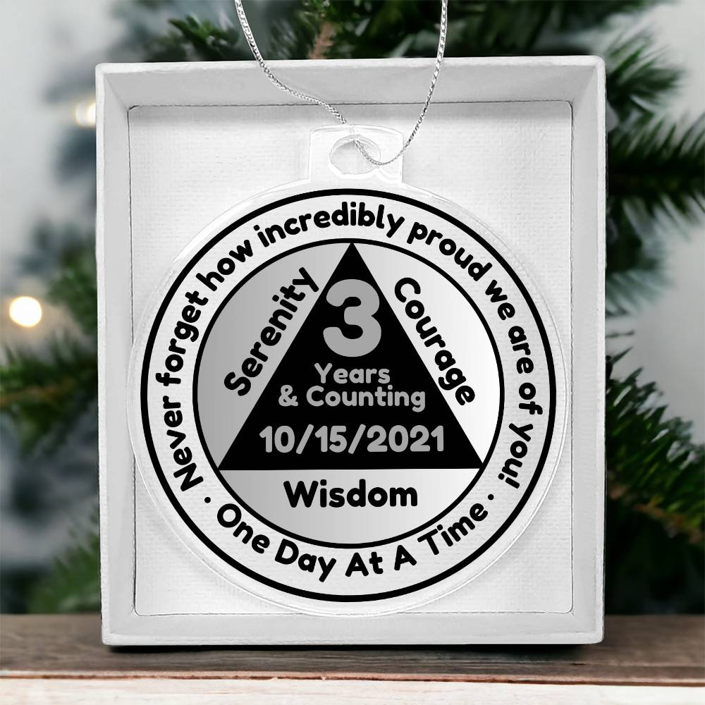 Custom Sobriety Date Ornament - Serenity, Courage and Wisdom ~ One Day At A Time