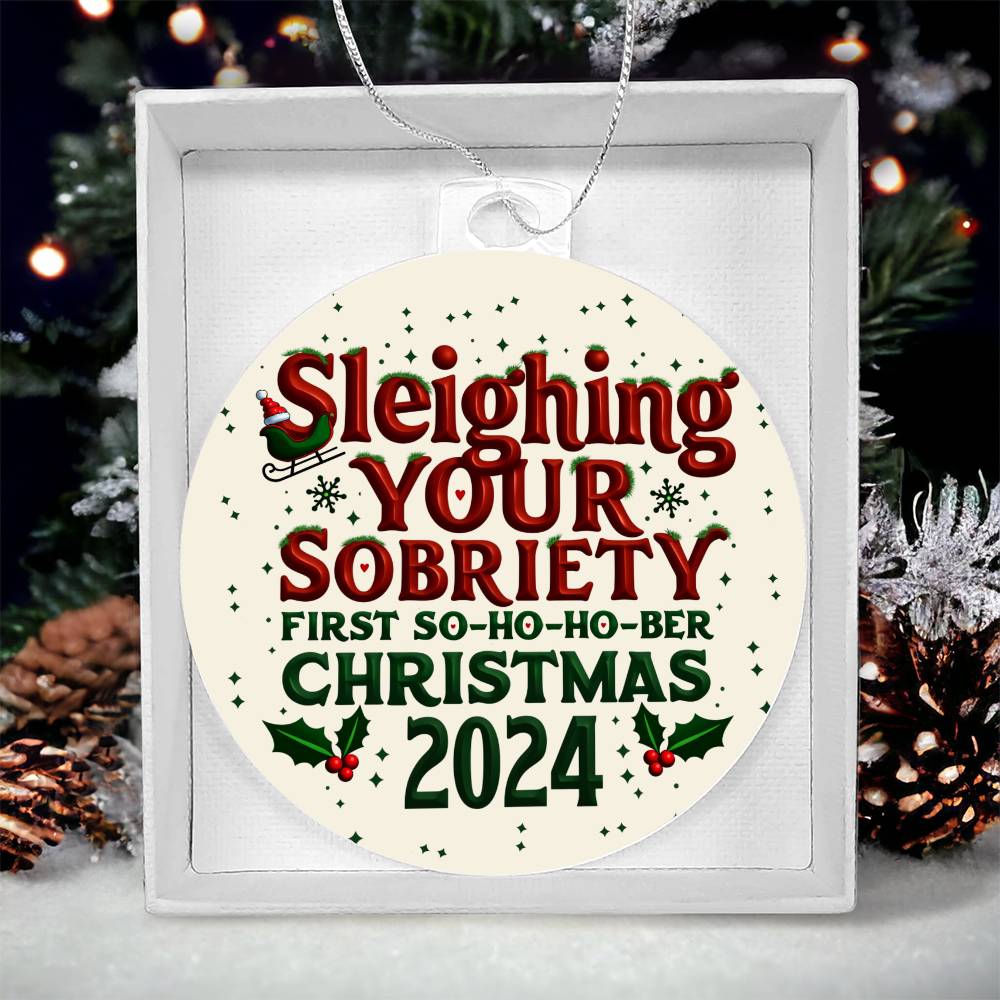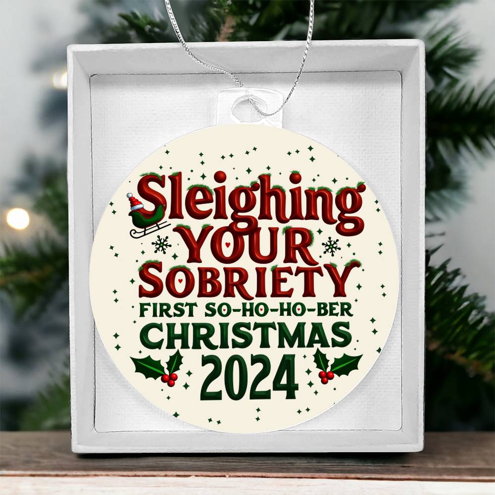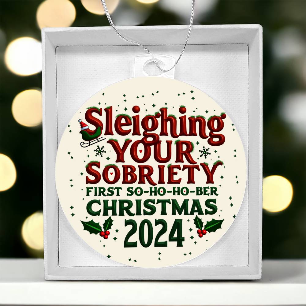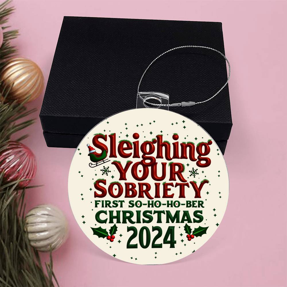 First So-Ho-Ho Ber Christmas 2024 Ornament ~ Sleighing Your Sobriety Keepsake