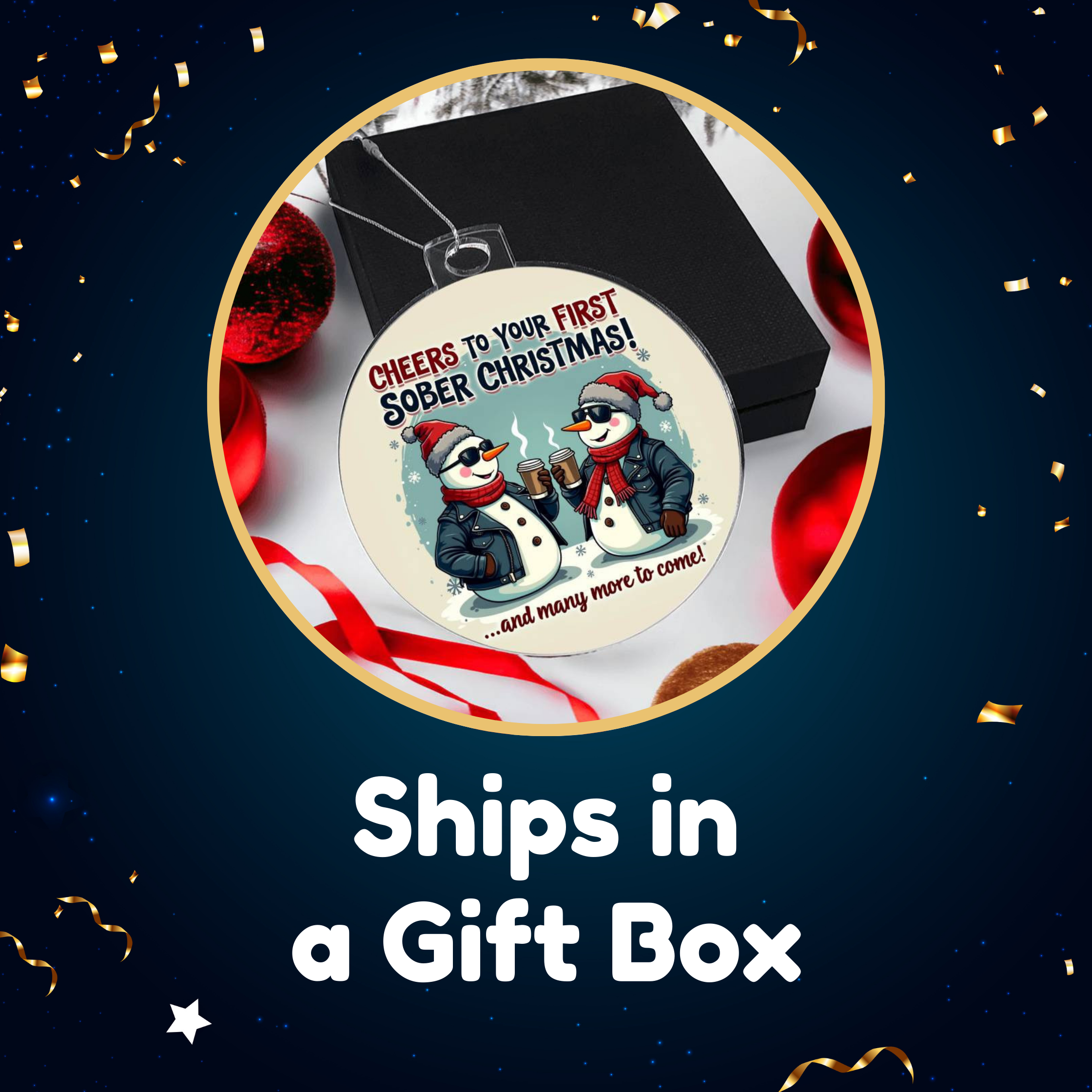Each ornament arrives in a sleek, ready-to-gift box, perfect for presenting directly to your loved one. It’s an ideal gift for marking a sober holiday, recovery anniversary, or simply showing your unwavering support.