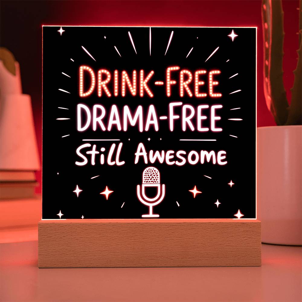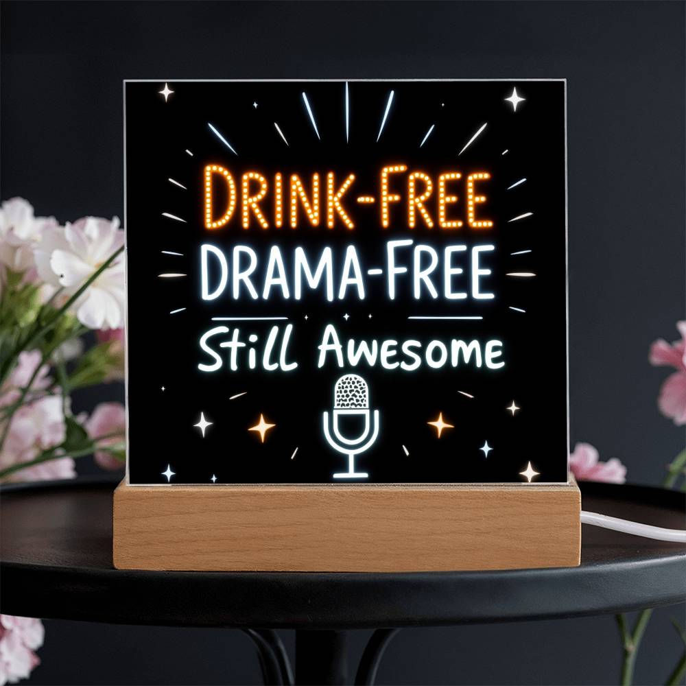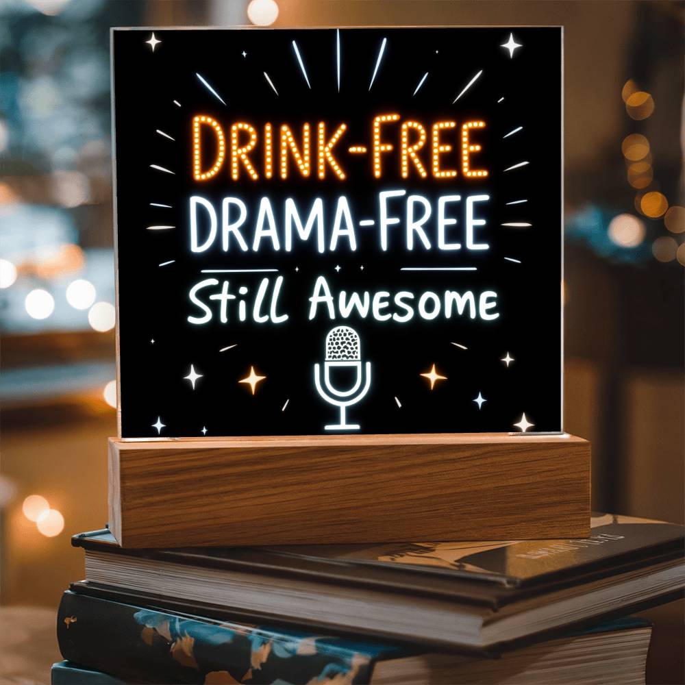 Brighten any room with this bold and empowering LED acrylic plaque that proudly declares, “Drink-Free, Drama-Free, Still Awesome.” The retro-inspired glowing marquee letters and microphone graphic symbolize a life that’s both fearless and unapologetically fun. Whether you’re celebrating sobriety or simply living a drama-free lifestyle, this plaque radiates positivity and self-confidence.