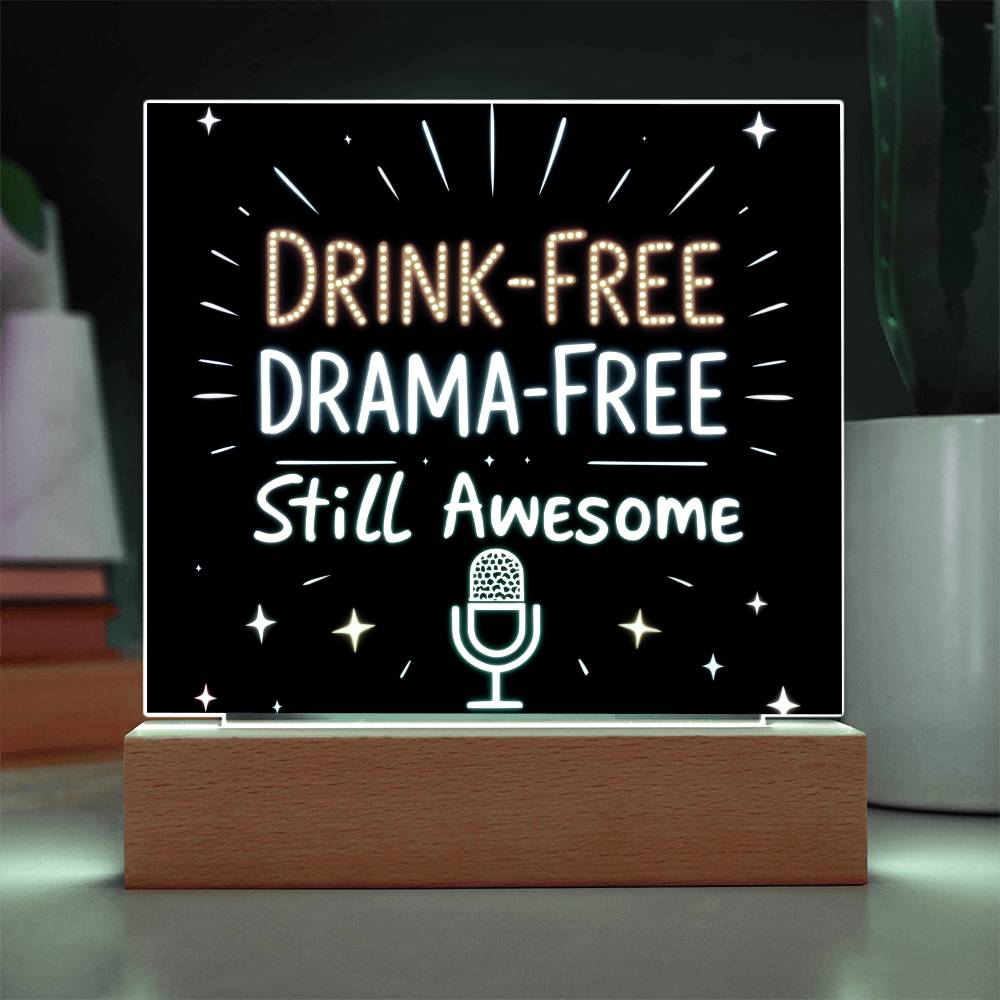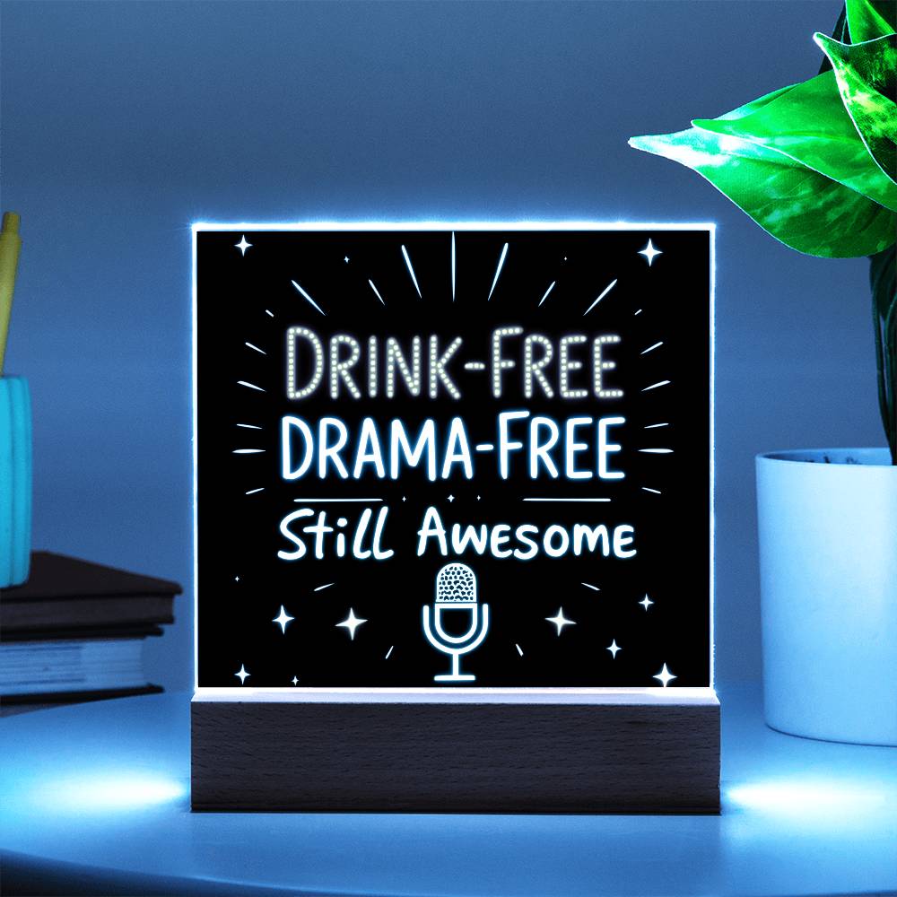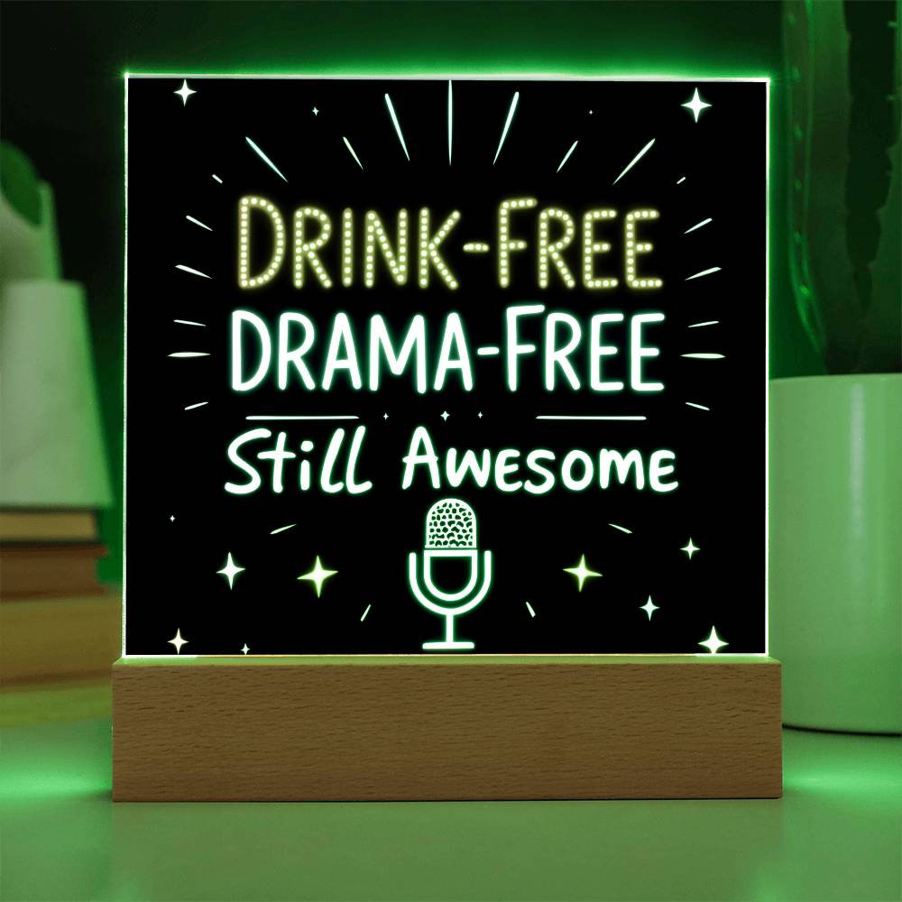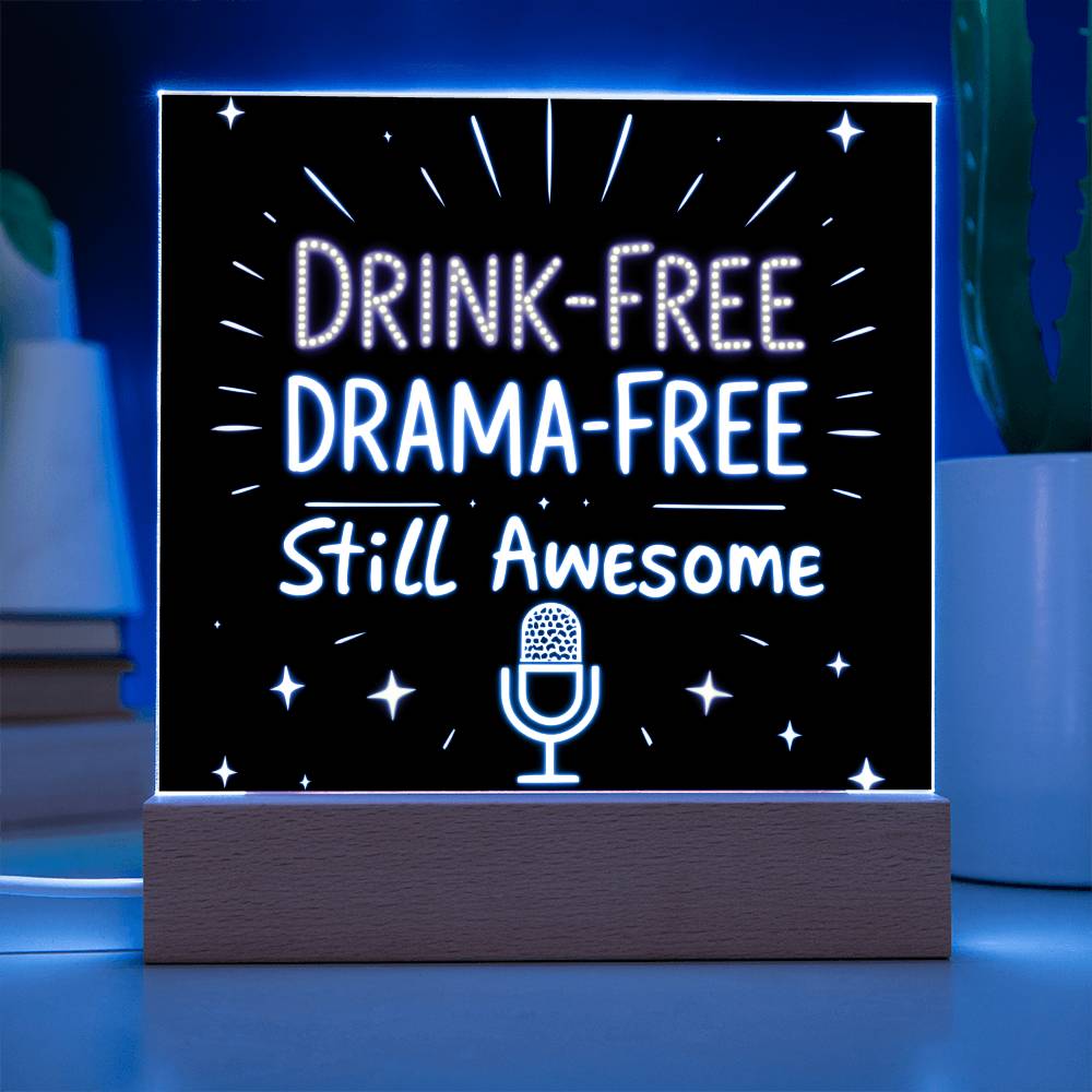 Brighten any room with this bold and empowering LED acrylic plaque that proudly declares, “Drink-Free, Drama-Free, Still Awesome.” The retro-inspired glowing marquee letters and microphone graphic symbolize a life that’s both fearless and unapologetically fun. Whether you’re celebrating sobriety or simply living a drama-free lifestyle, this plaque radiates positivity and self-confidence.