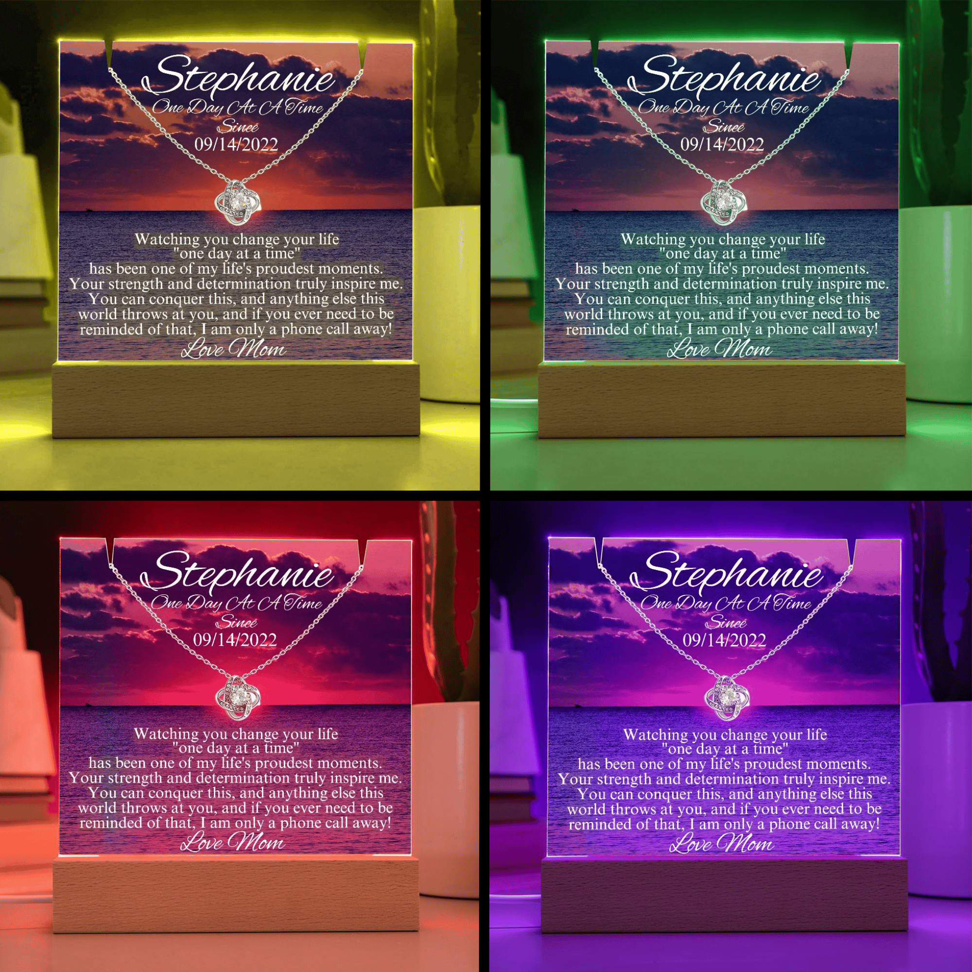 LED Sobriety Gift with Necklace Set ~ Customize Sober Date and names ~ Odaat for her