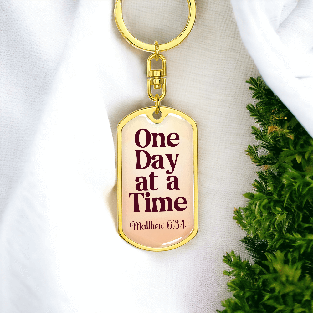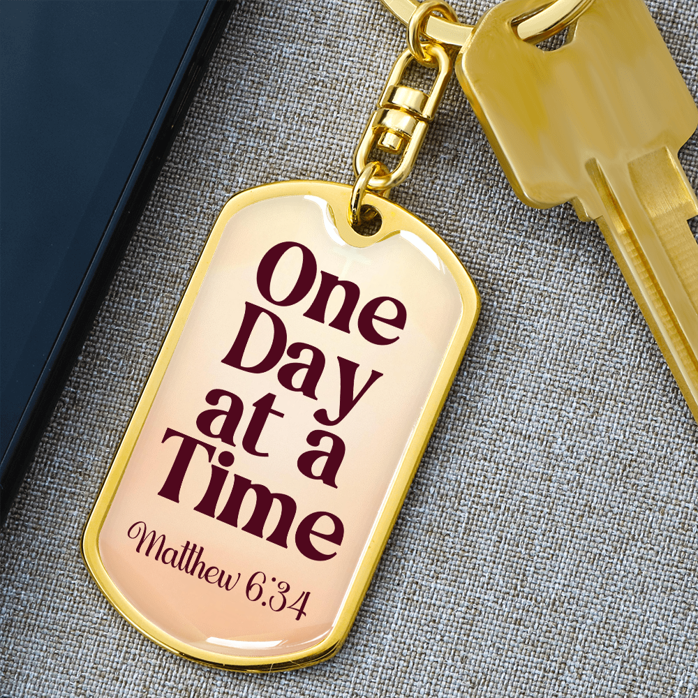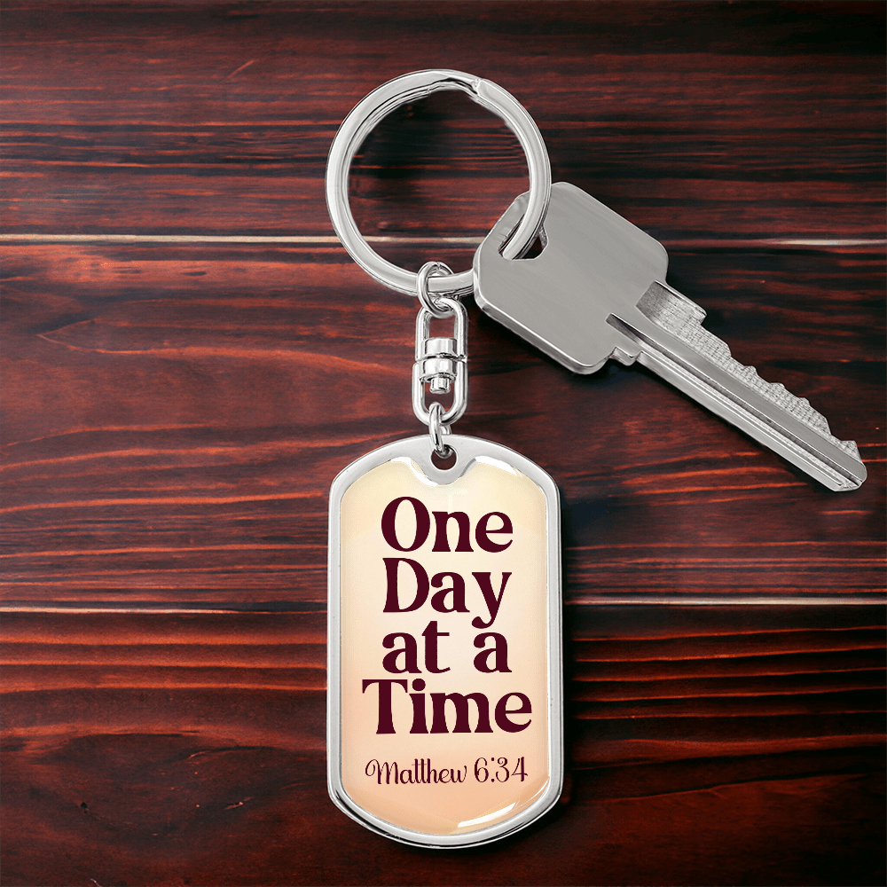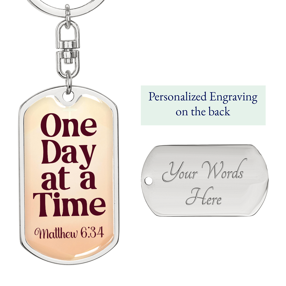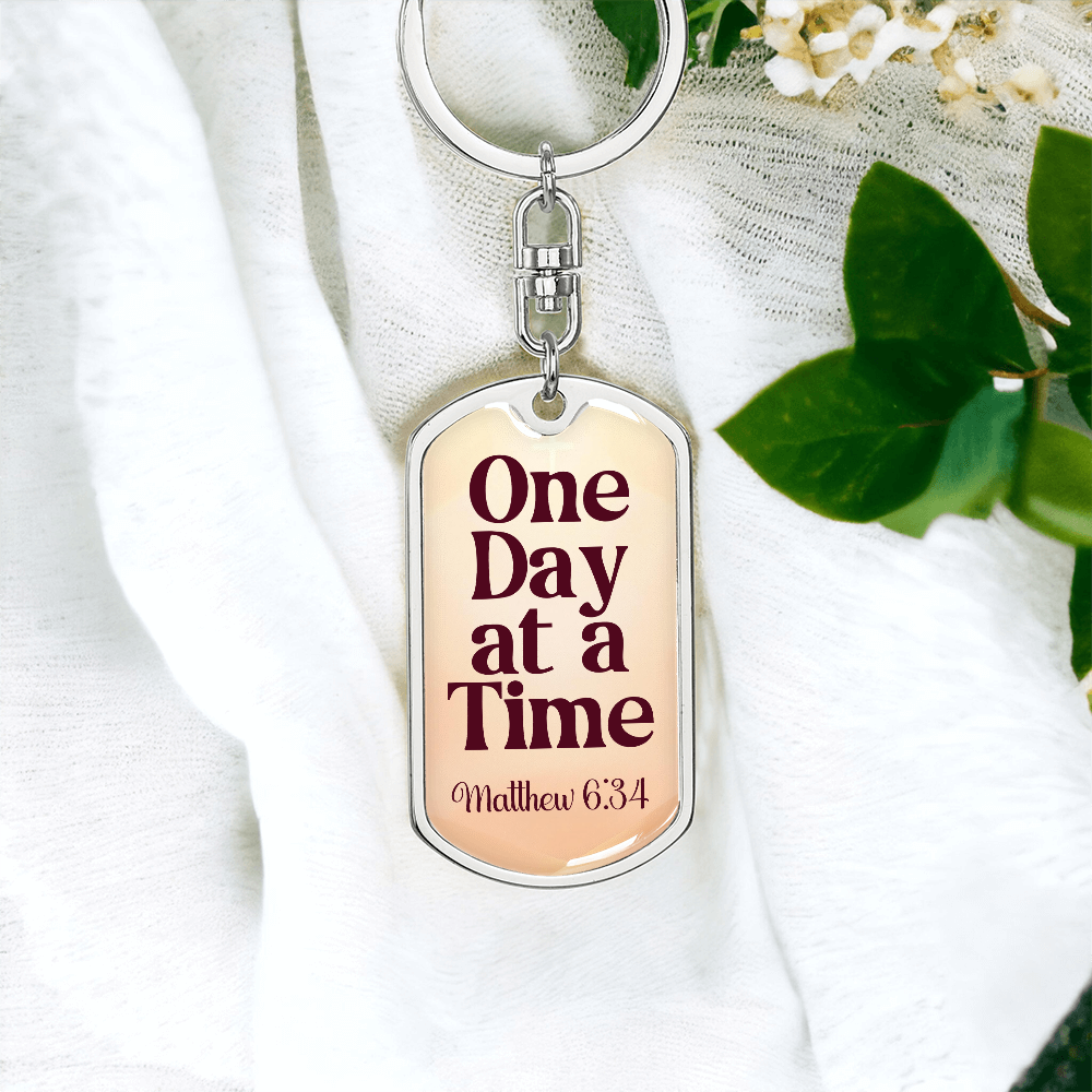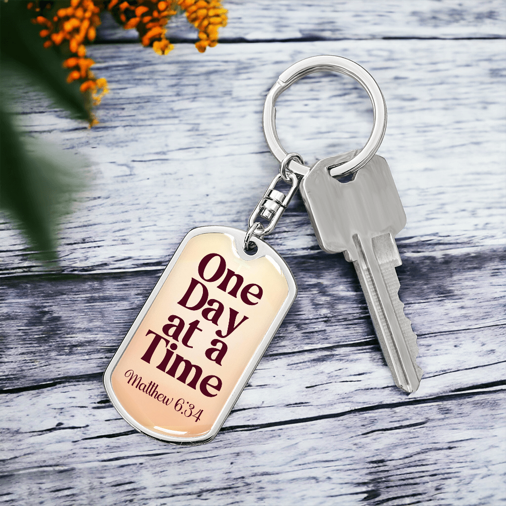 ✨ Celebrate resilience and faith with this "One Day at a Time" dog tag keychain, a powerful reminder of strength and perseverance. Whether you're marking a recovery milestone or gifting a loved one on their journey, this keychain serves as a daily source of motivation and encouragement.