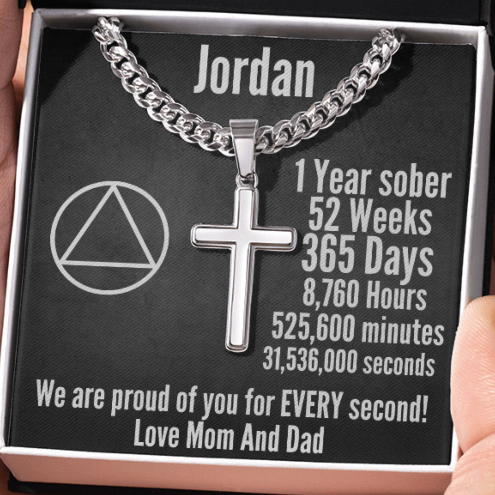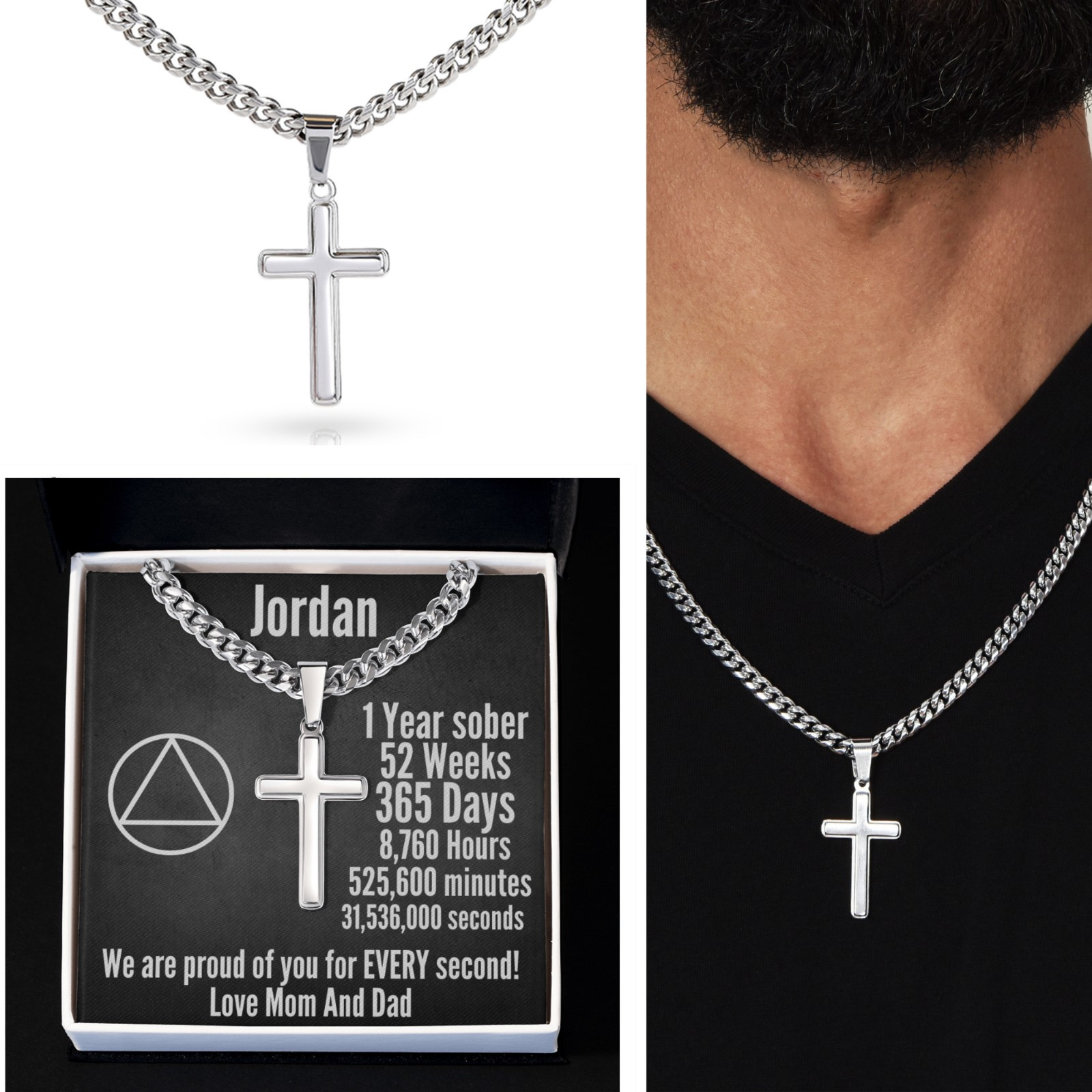 Mark an incredible milestone with a deeply meaningful keepsake. This Personalized Cuban Link Cross Necklace is a powerful symbol of faith, strength, and perseverance—perfect for celebrating sobriety, personal growth, and unwavering commitment. ✝️✨