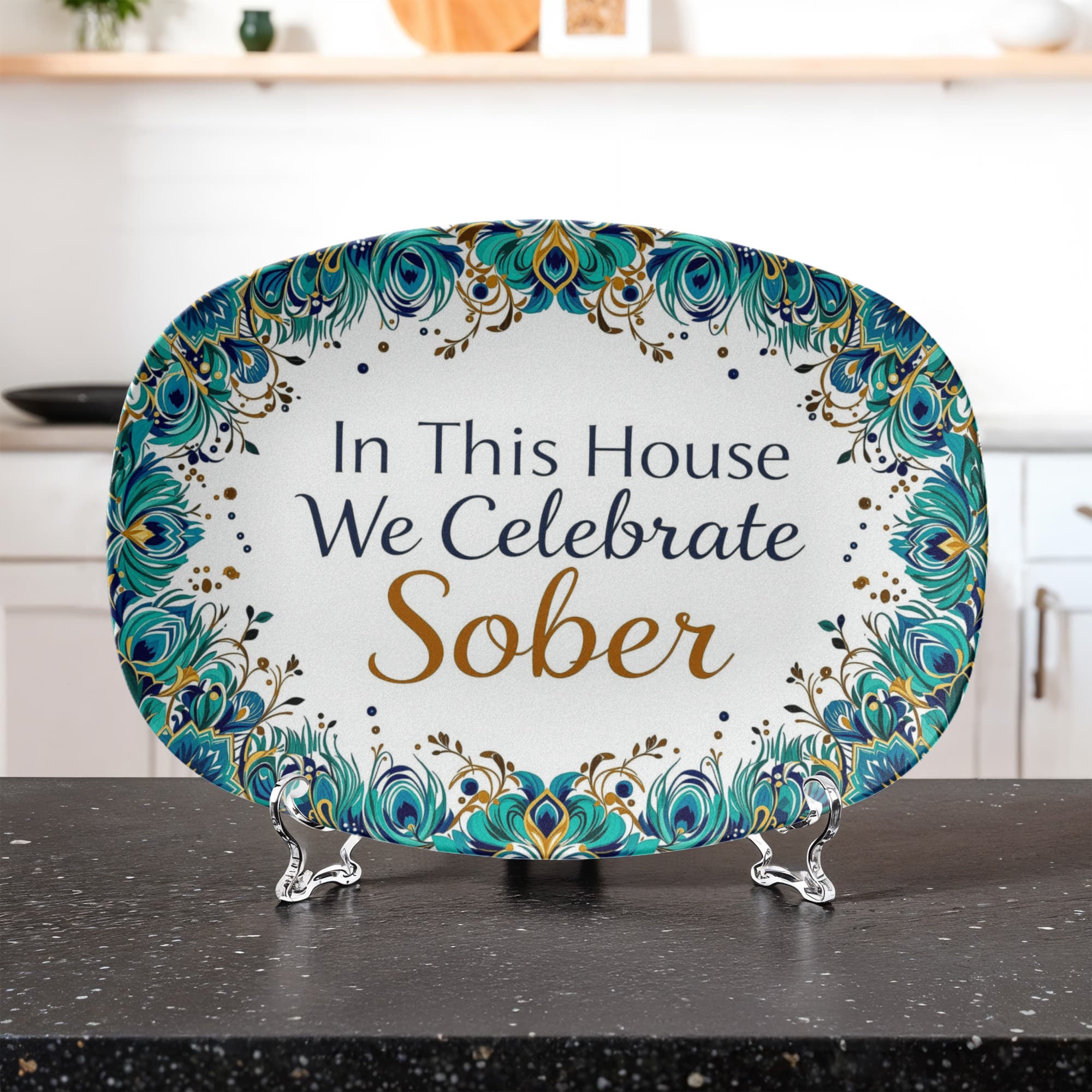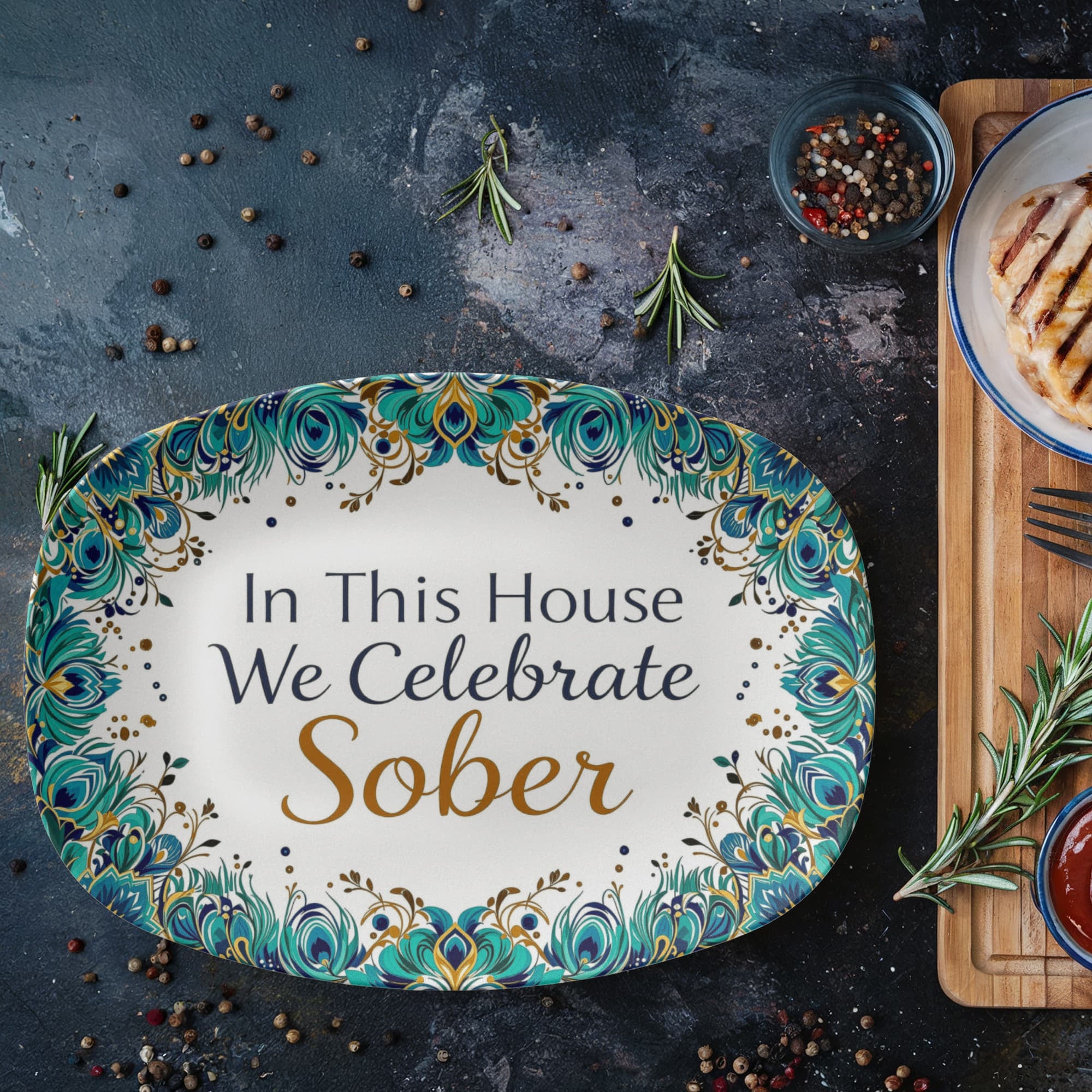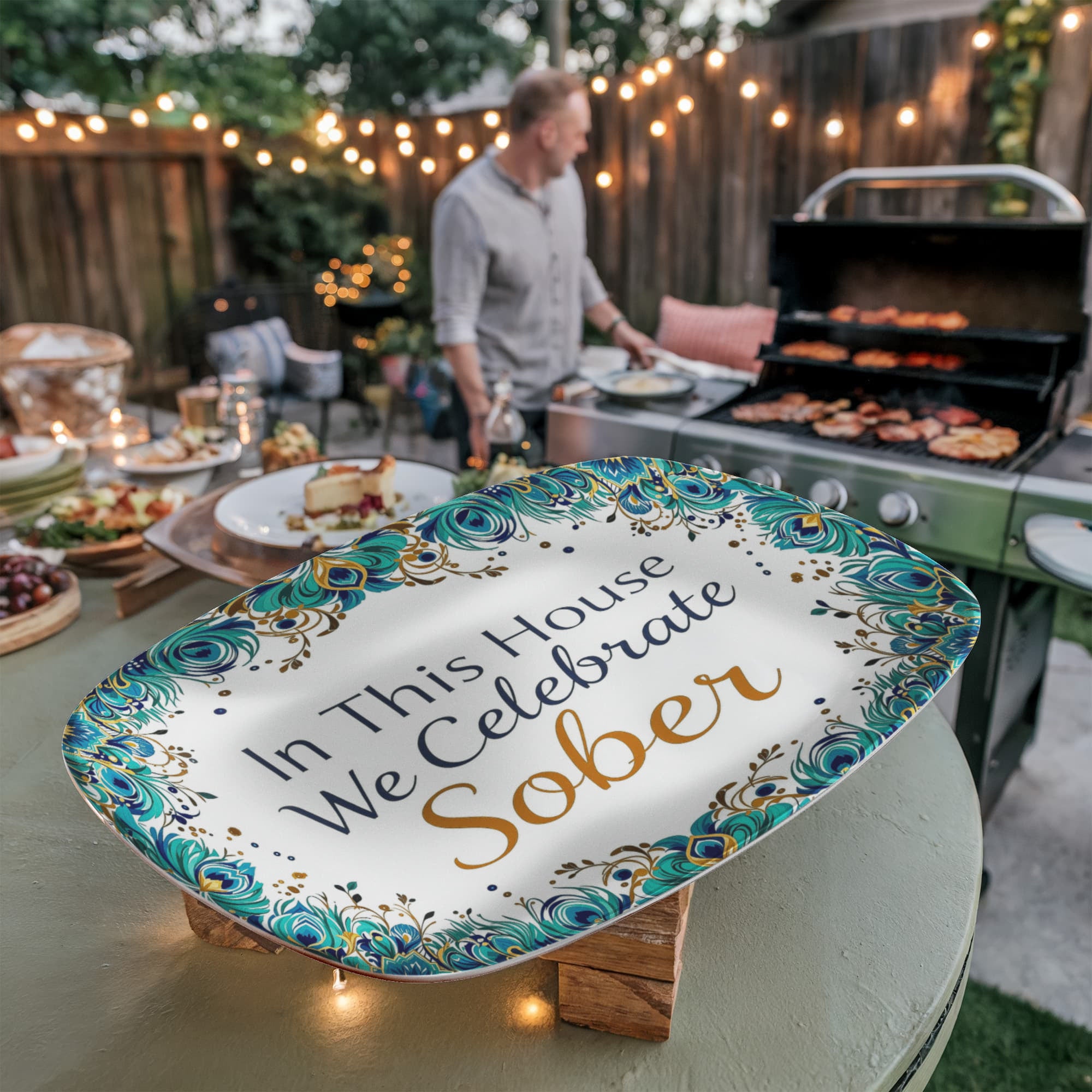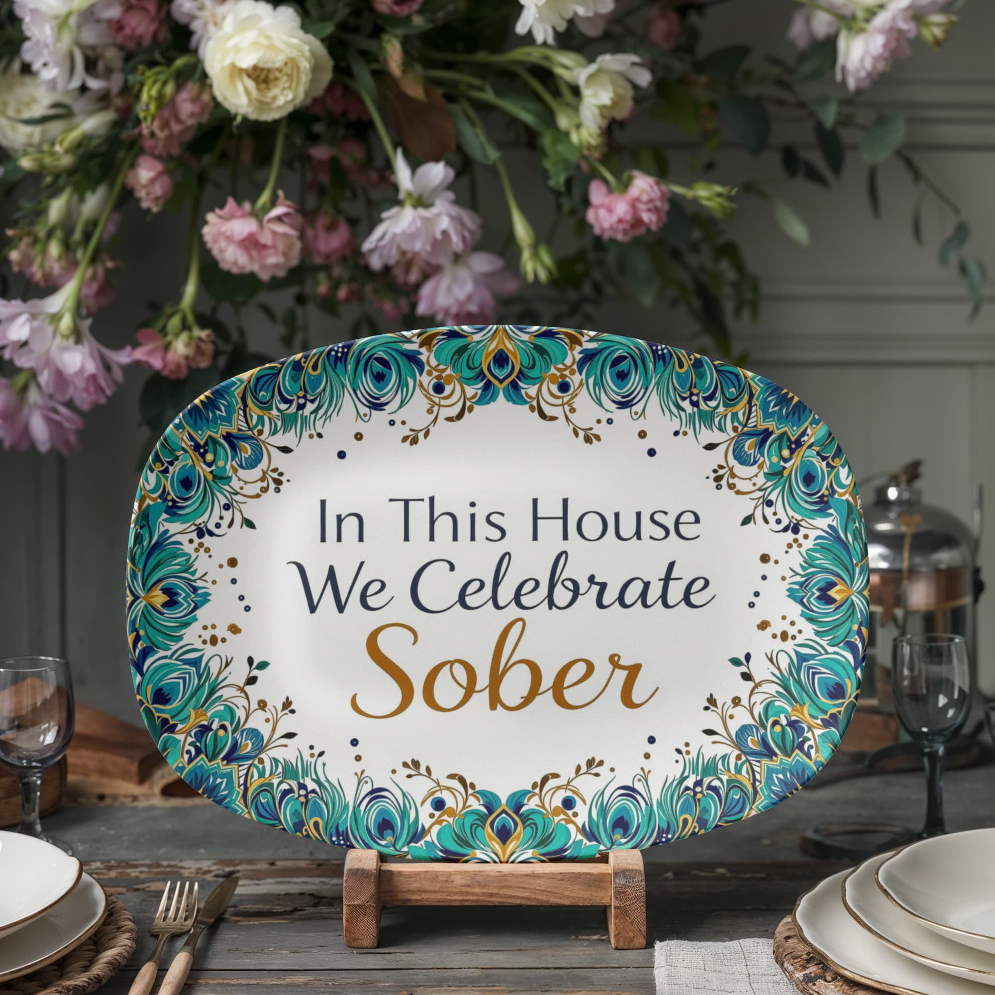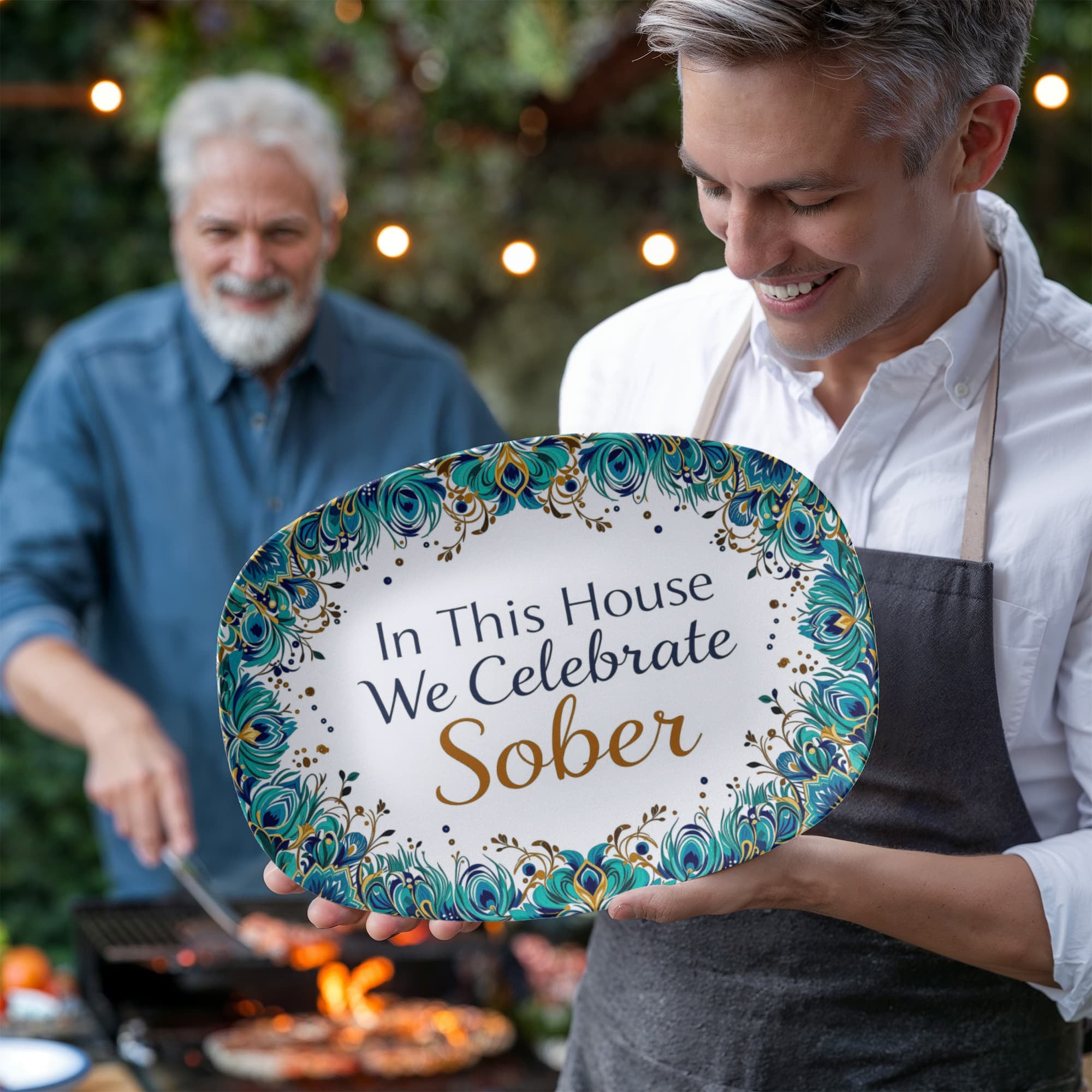 Sobriety is powerful, proud, and worthy of celebration. This stunning platter captures that spirit with a regal peacock-inspired design—featuring bold blues, rich emeralds, and luxe gold details that shimmer with confidence and grace.