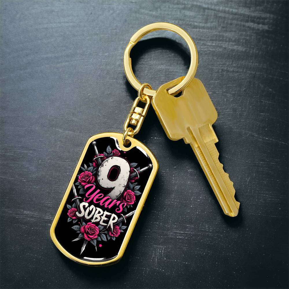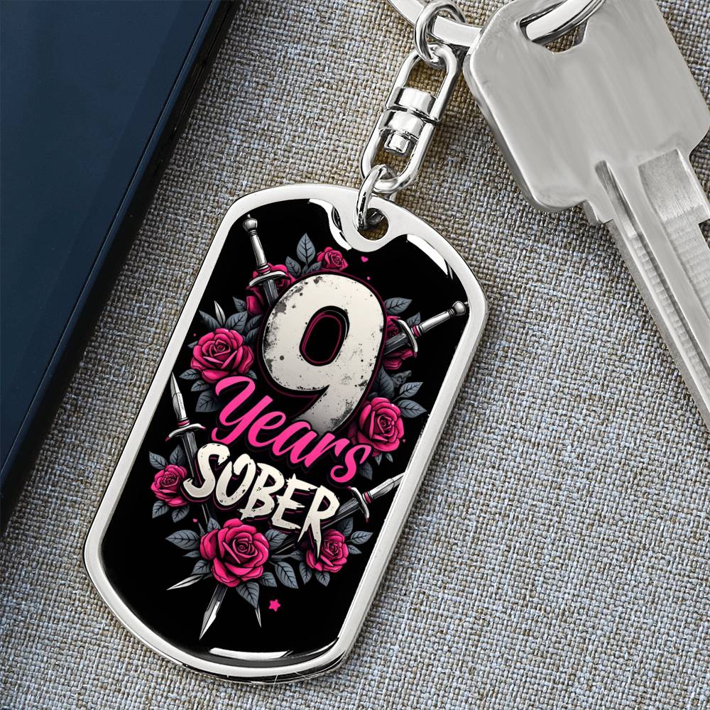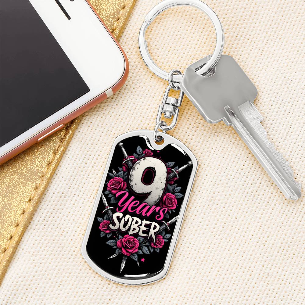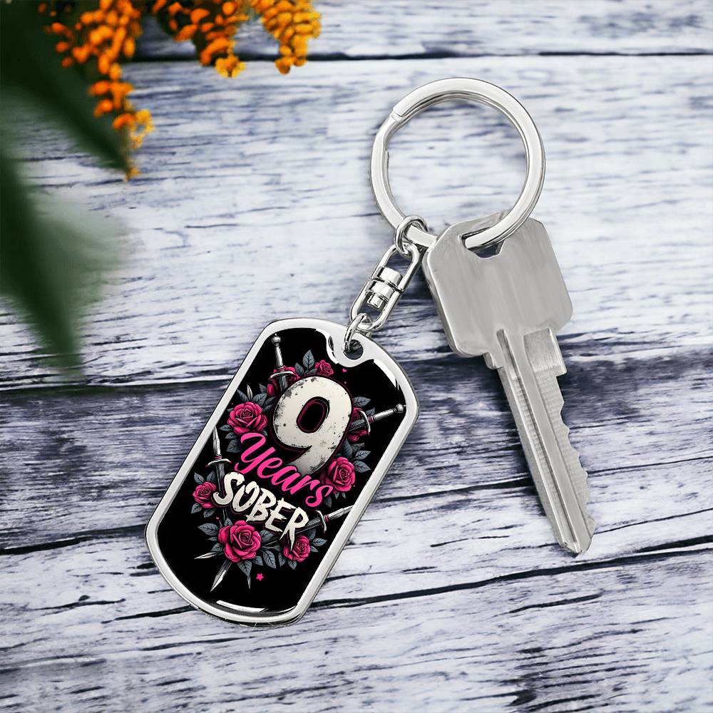 ⚔️ 9 Years Sober Dog Tag Keychain ~ A Badge of Strength and Resilience ⚔️