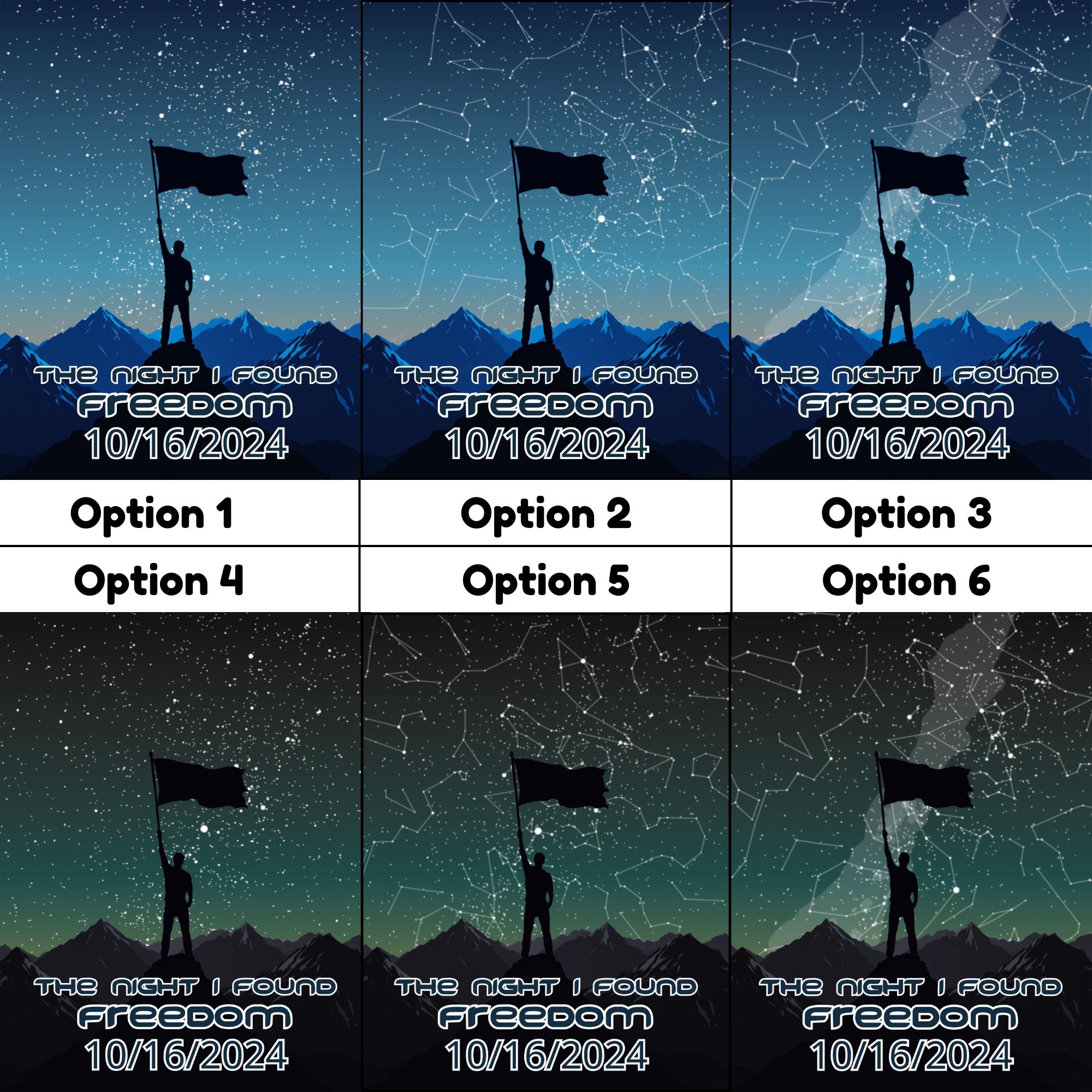 • Stars + Constellations + Milky Way (Options 3 & 6) – A breathtaking full sky