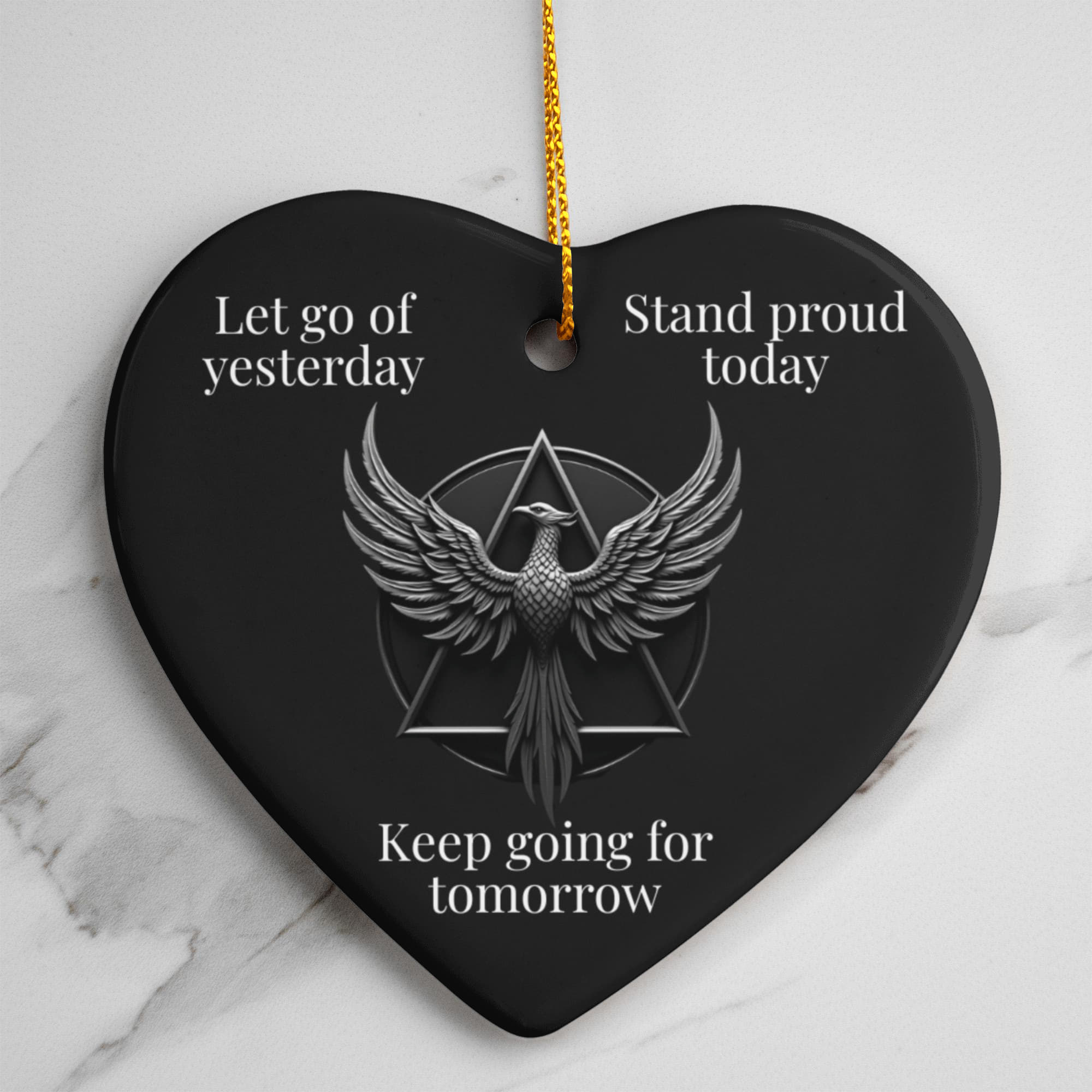 “Let go of yesterday • Stand proud today • Keep going for tomorrow.”