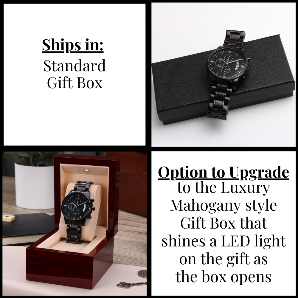 Perfect gift! The watch was amazing and the box that it came it was the perfect touch! Joy Filled Recovery helped me and worked with me through the issues I was having with the watch during the order process! Highly recommended
