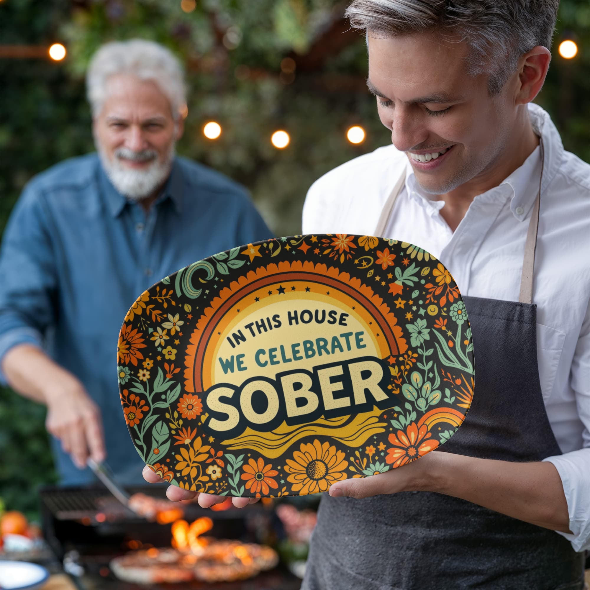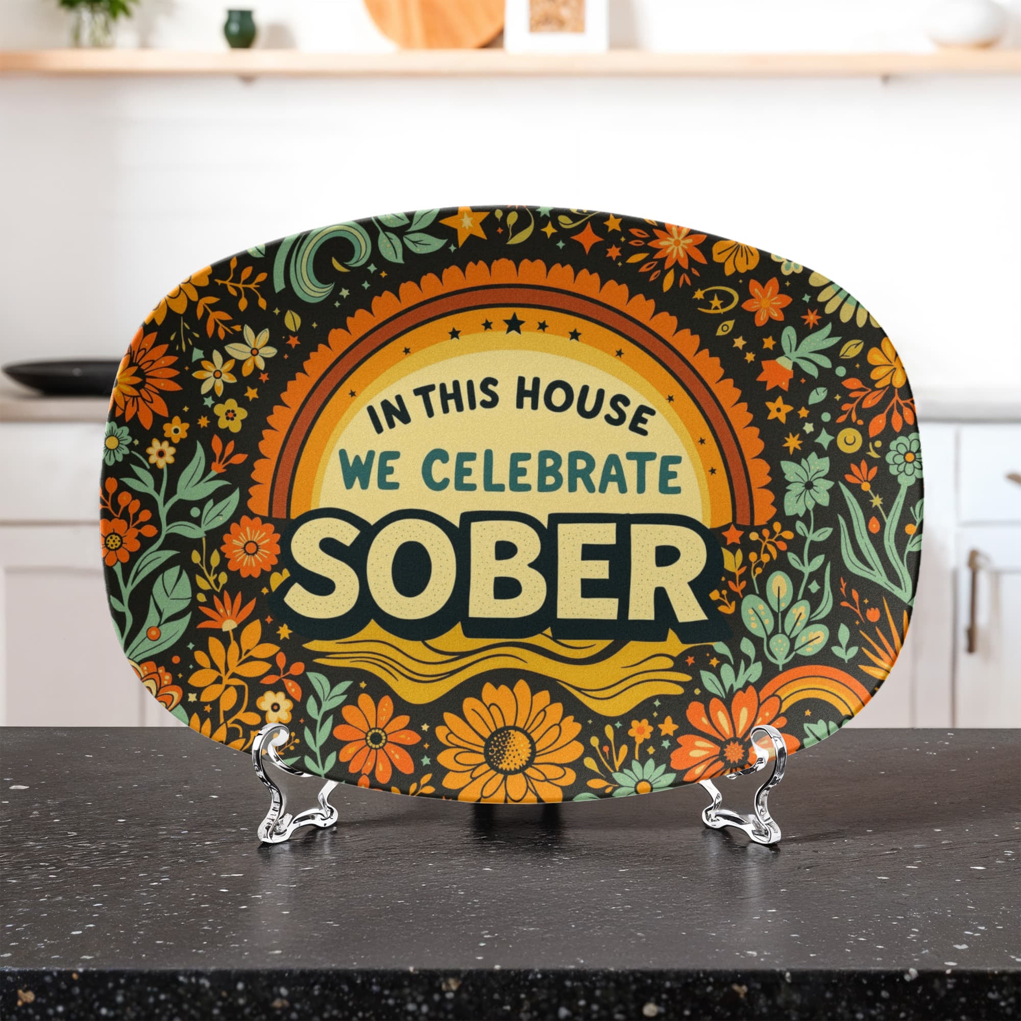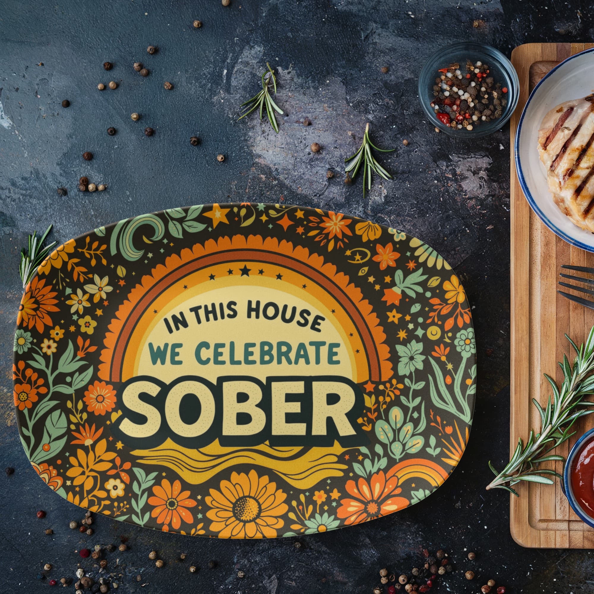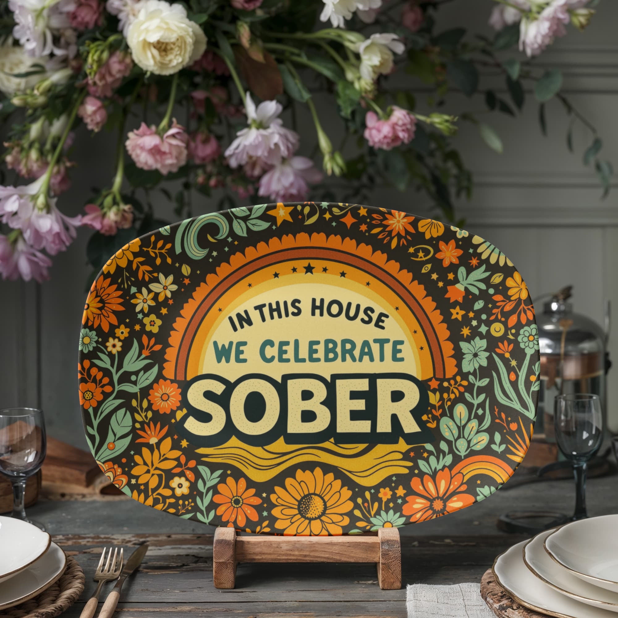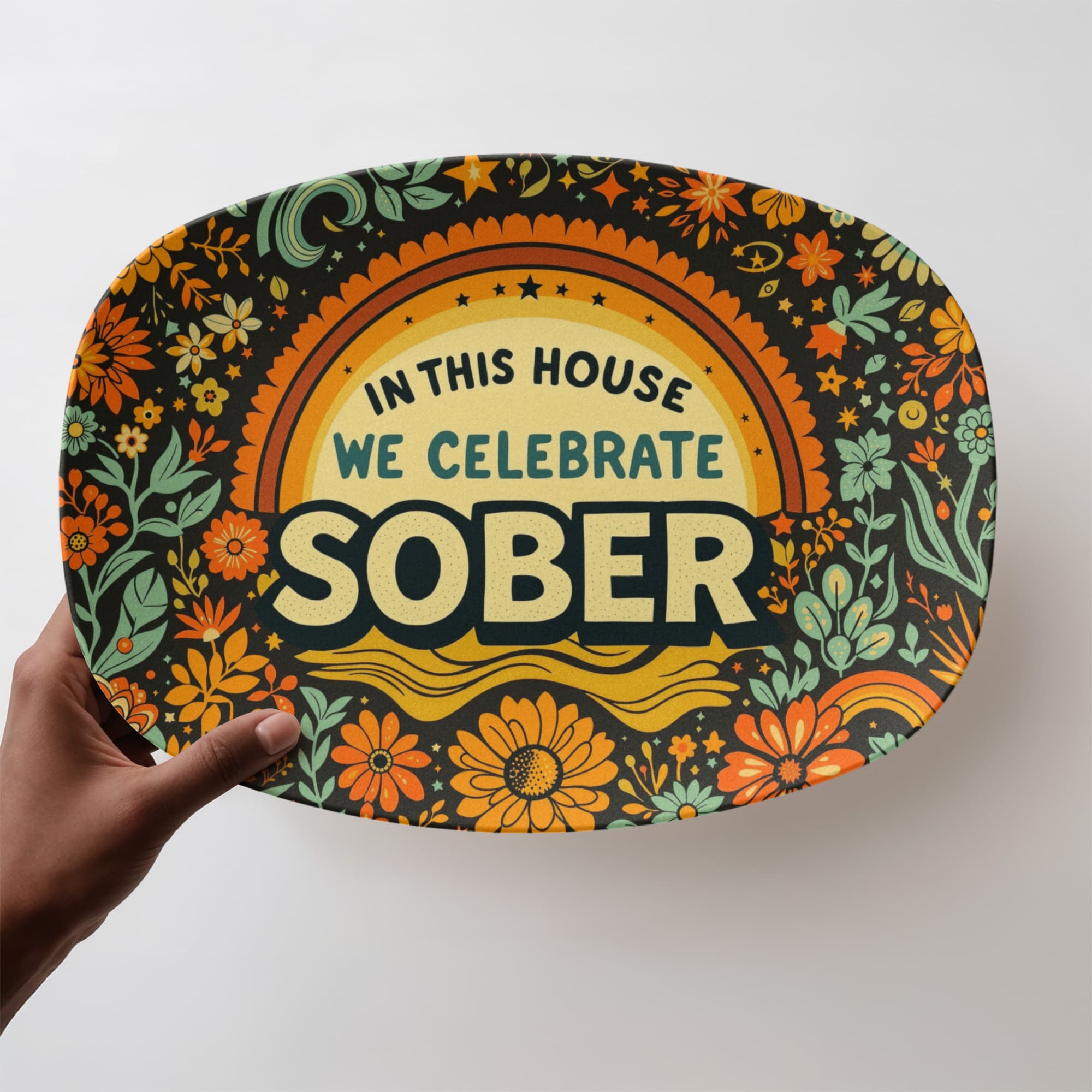 Sobriety is bold, joyful, and worth celebrating loud and proud—and this retro-inspired platter does just that. With vintage rainbow arches, groovy florals, and a color palette straight from the 70s, this piece is a cheerful reminder that life in recovery is full of brightness, beauty, and second chances.