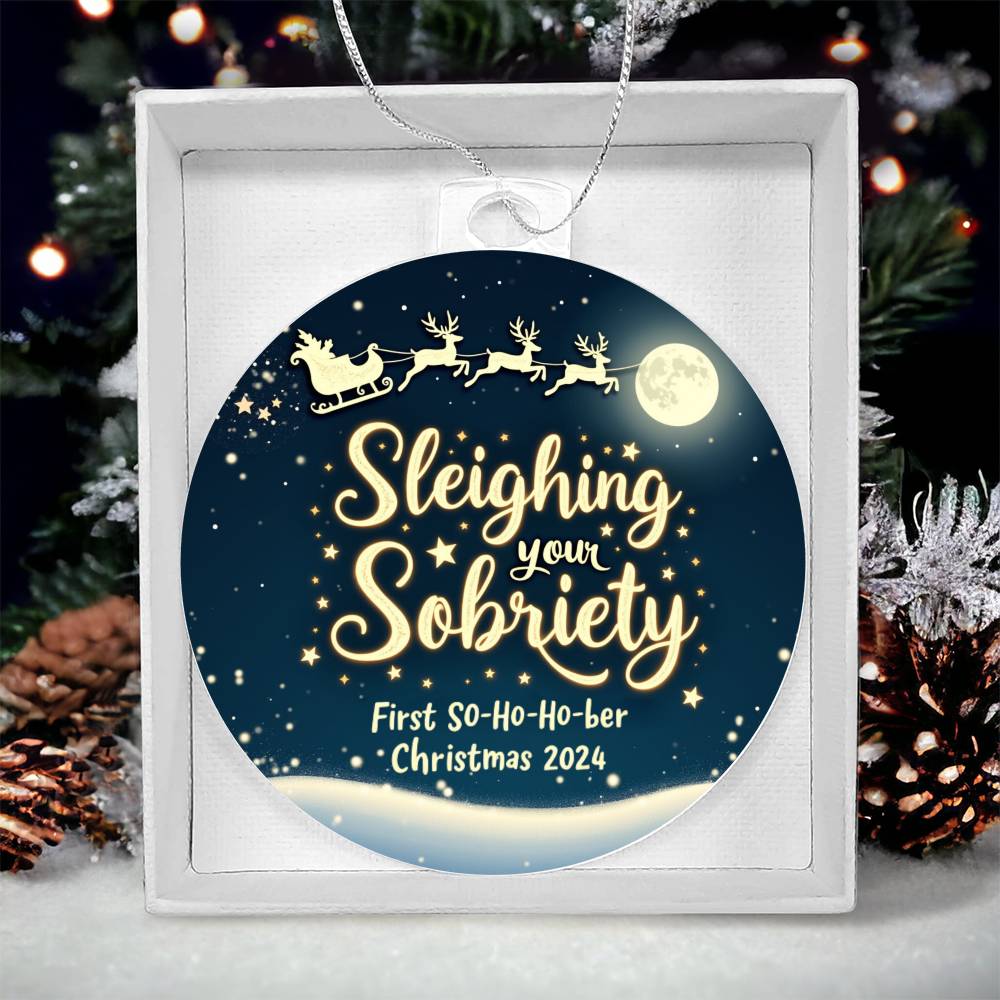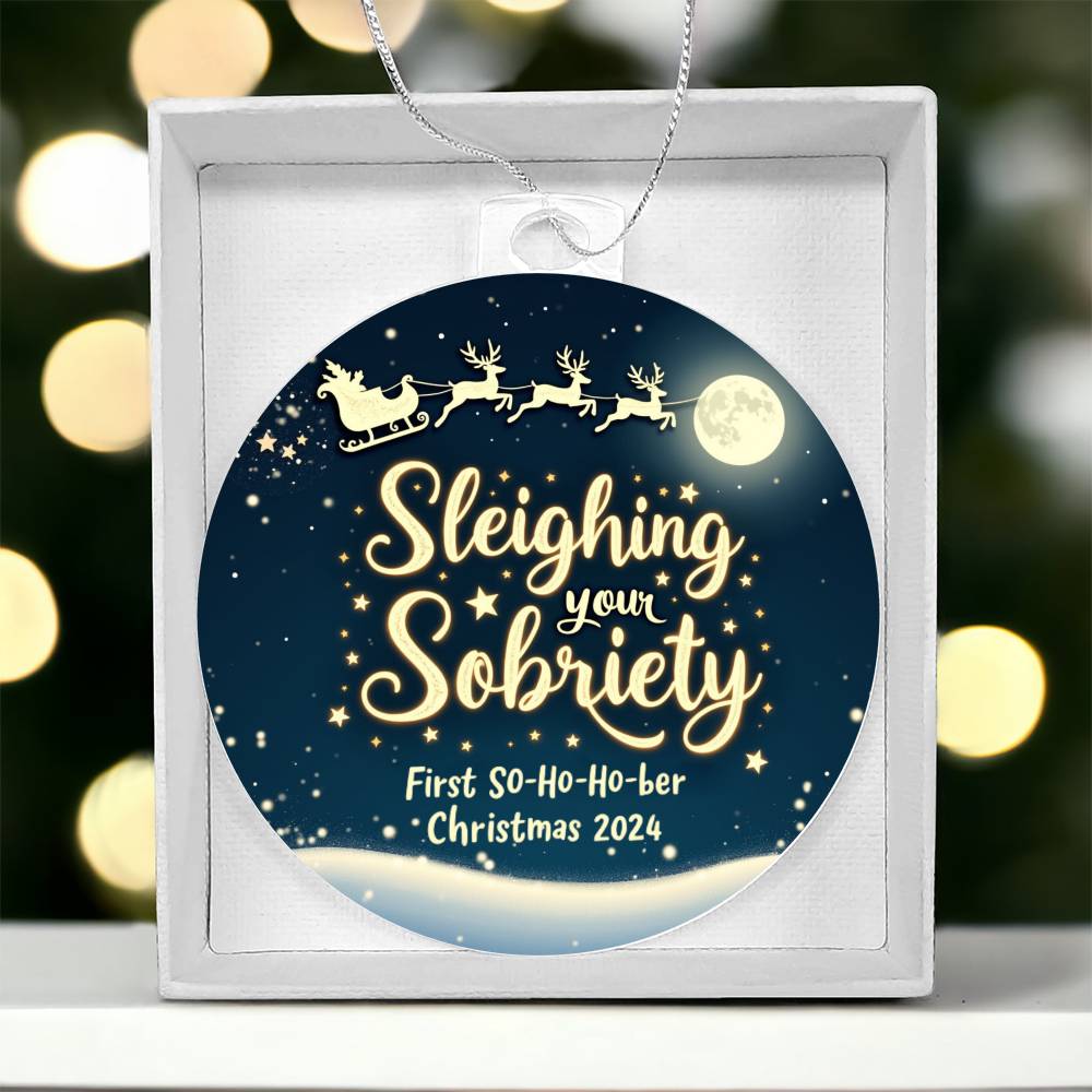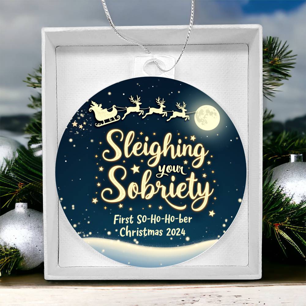 Sleighing Your Sobriety Ornament – First Sober Christmas 2024 | Personalized Sobriety Gift