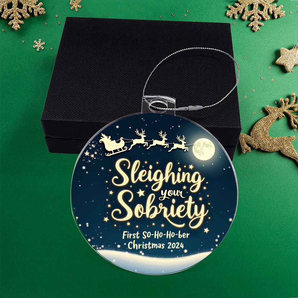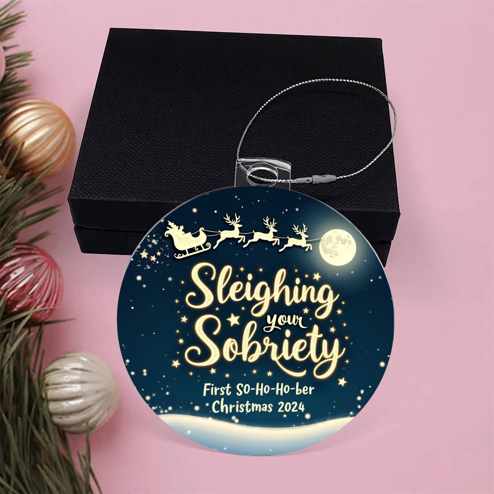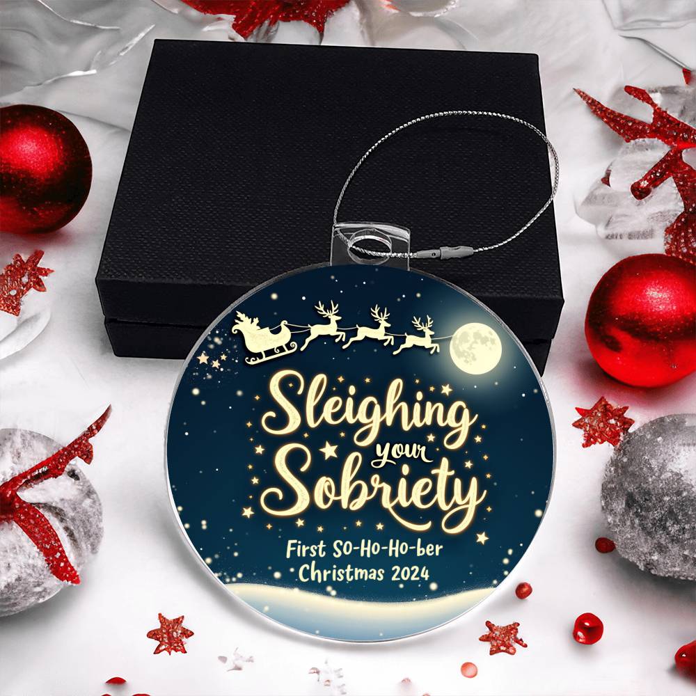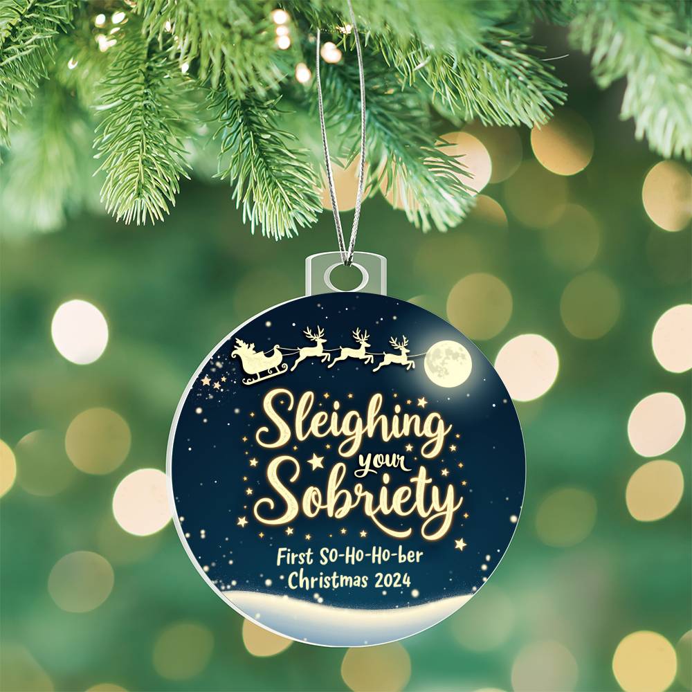 Sleighing Your Sobriety Ornament – First Sober Christmas 2024 | Personalized Sobriety Gift
