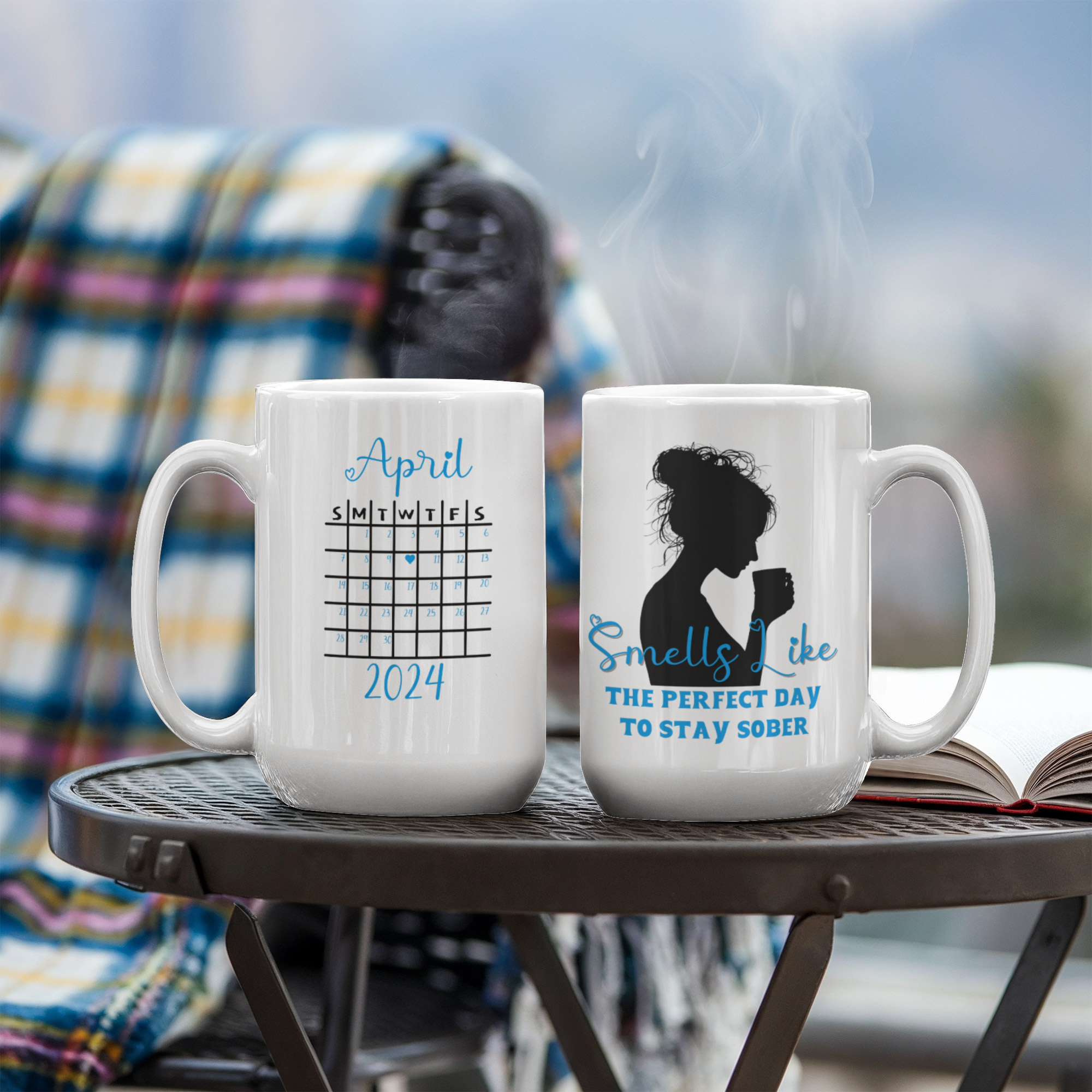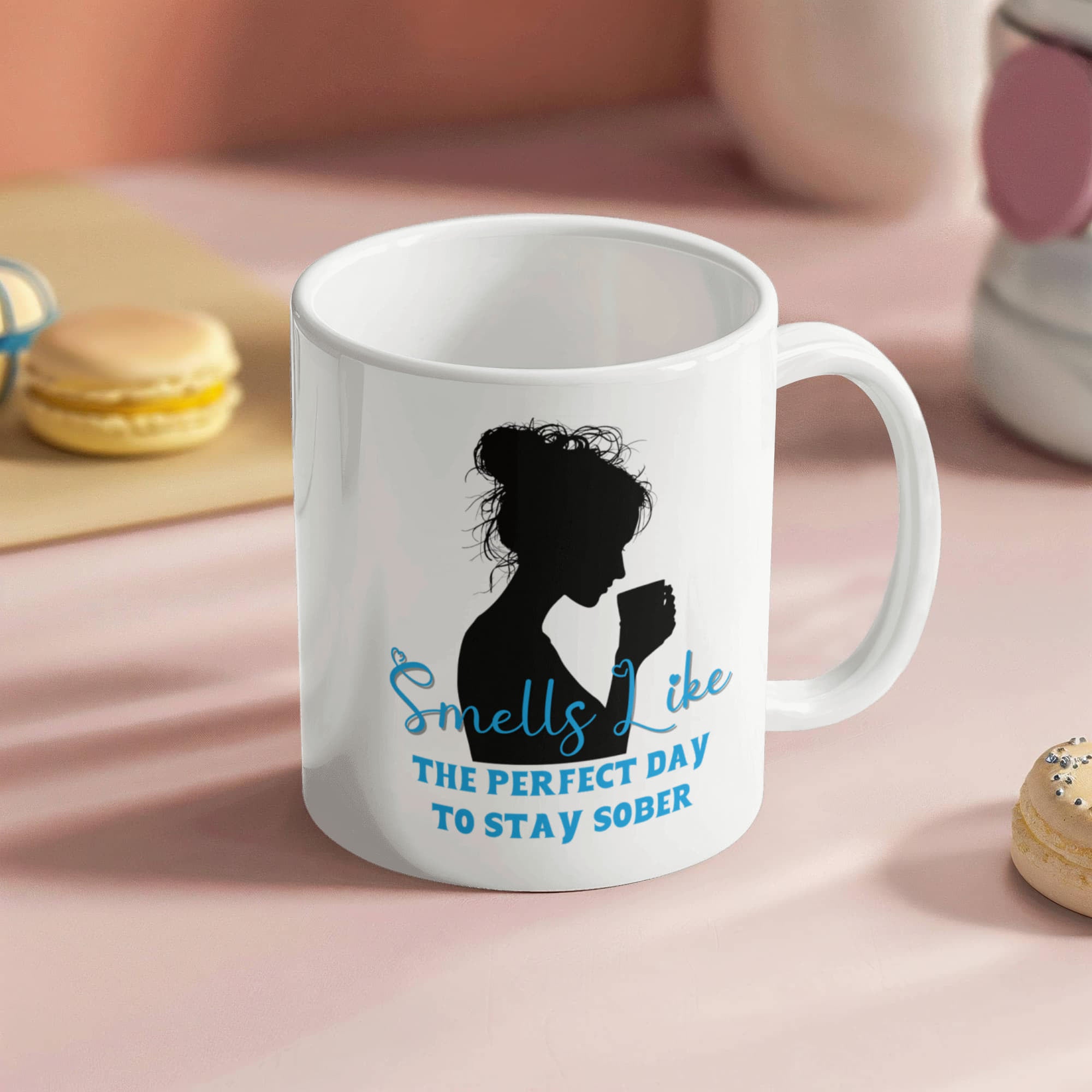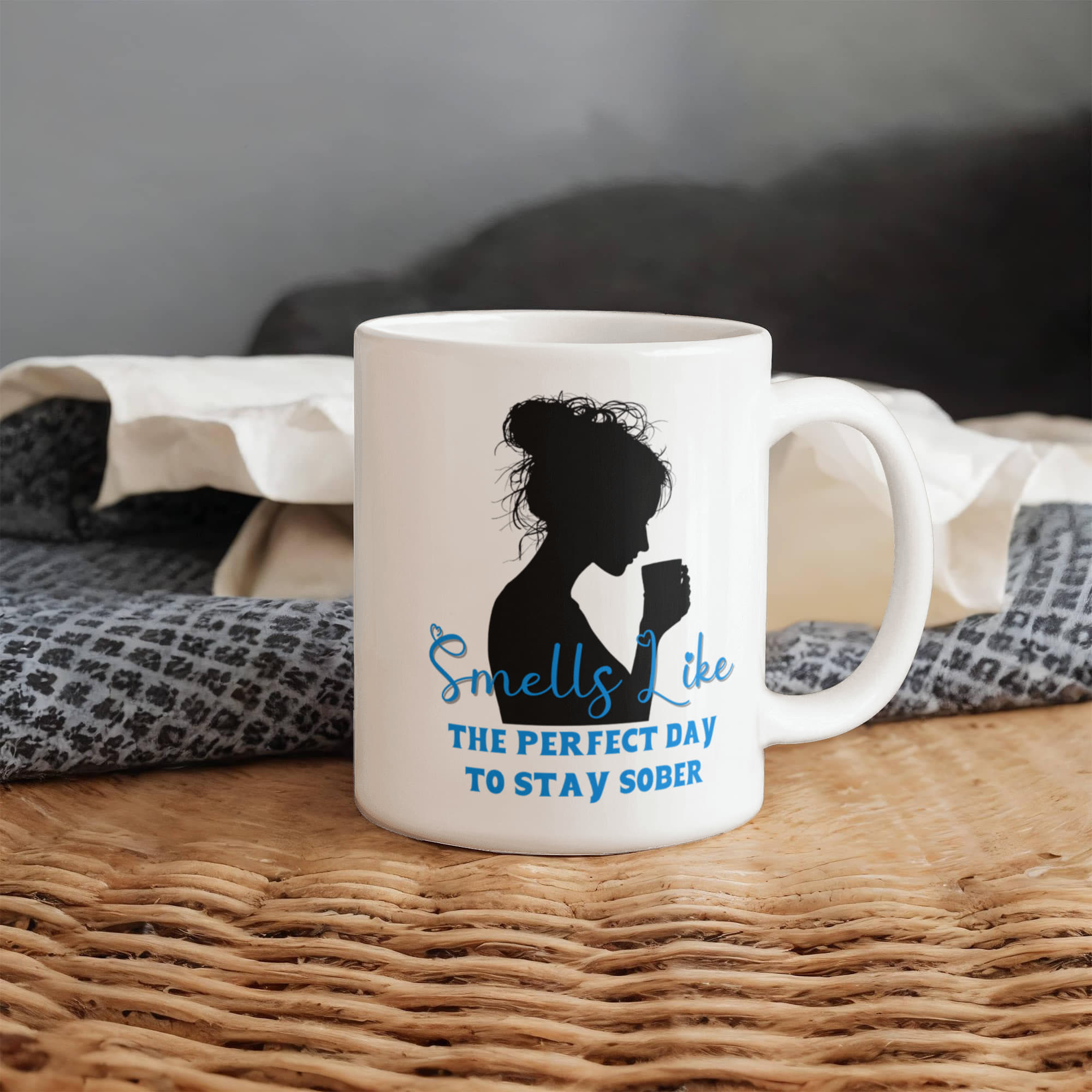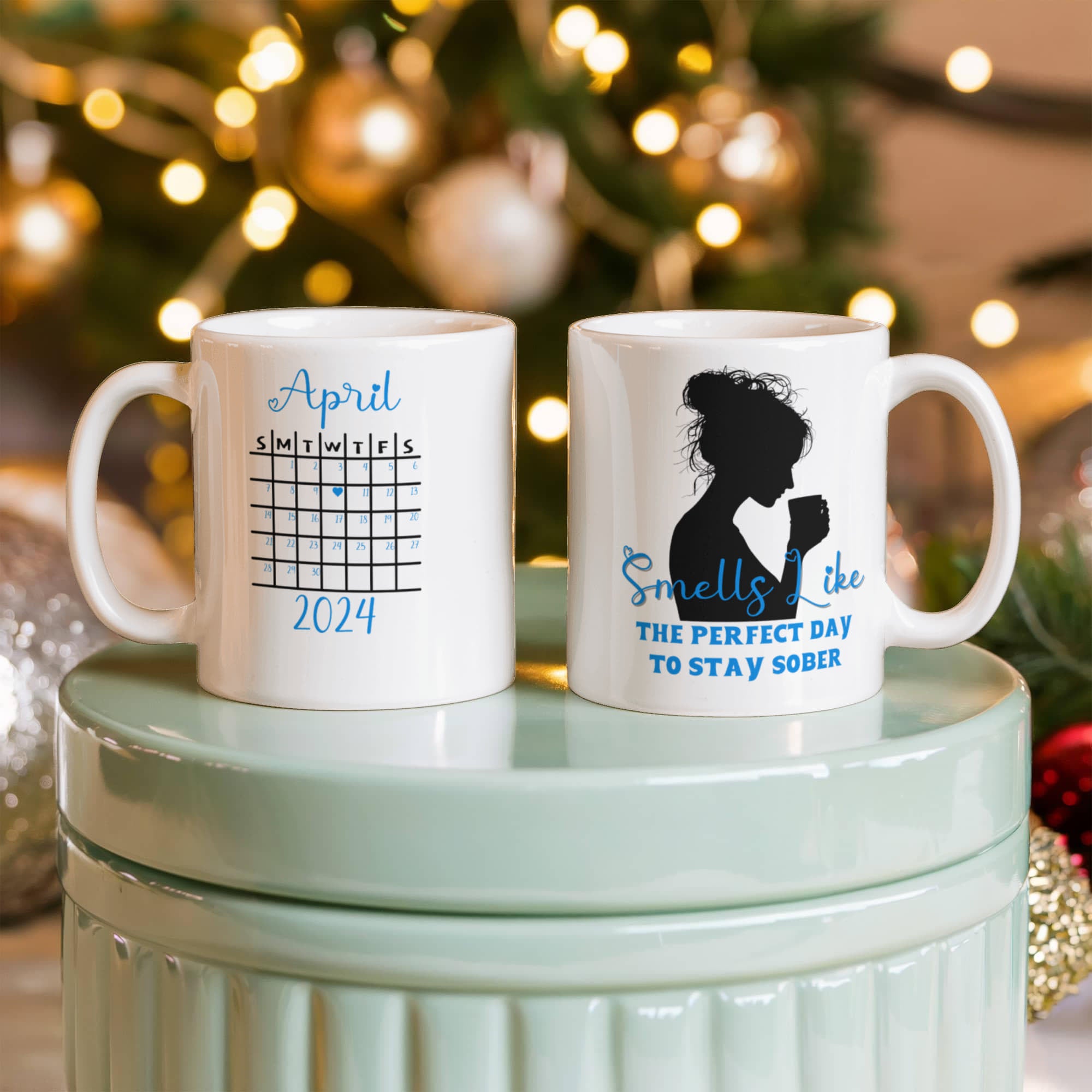 Mark every milestone with this beautifully designed sobriety mug, crafted to inspire and encourage each day. Featuring an elegant silhouette of a woman enjoying her coffee, paired with the uplifting phrase “Smells Like the Perfect Day to Stay Sober” on the front, this mug serves as a daily reminder of strength and renewal. The back can be customized with a calendar design highlighting your personal sobriety date, making it a truly meaningful keepsake.