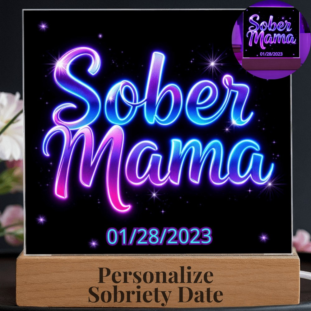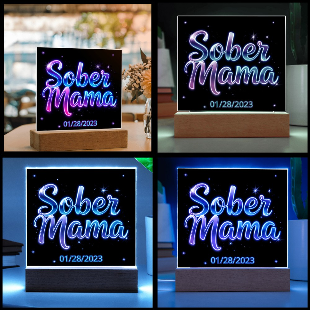Celebrate milestones and honor the incredible journey of sobriety with this personalized LED plaque! 🌟 Featuring the heartfelt message "Sober Mama" in radiant neon-style text and a customizable sobriety date displayed at the bottom, this acrylic keepsake is a stunning tribute to progress and perseverance. The glowing design with 7 vibrant LED colors illuminates the courage and resilience behind every step taken. 💖