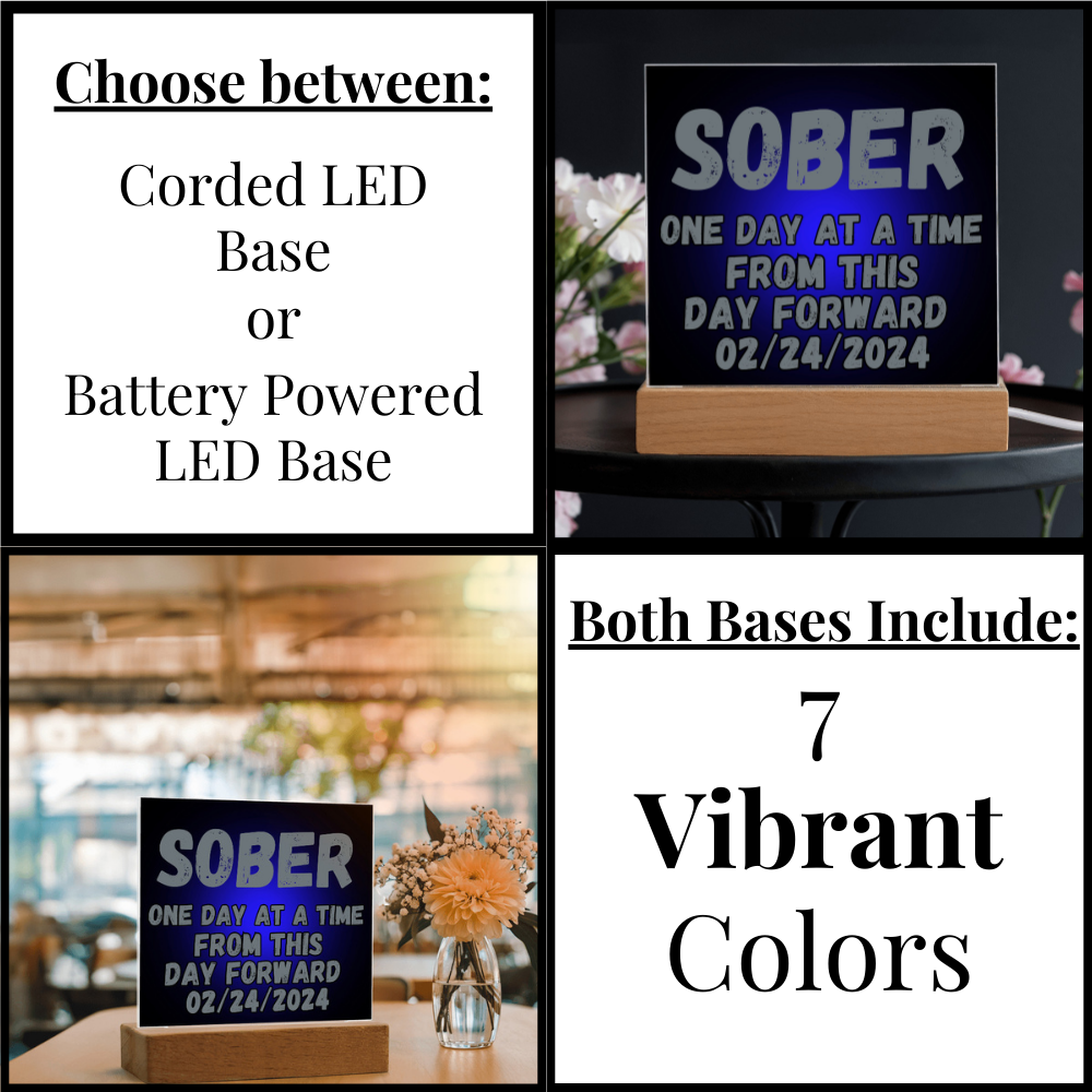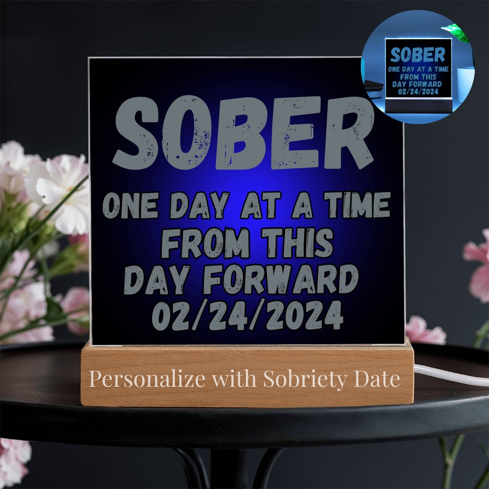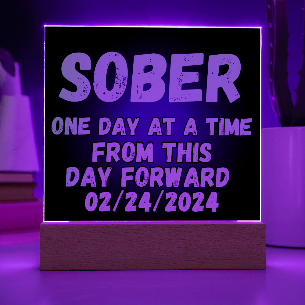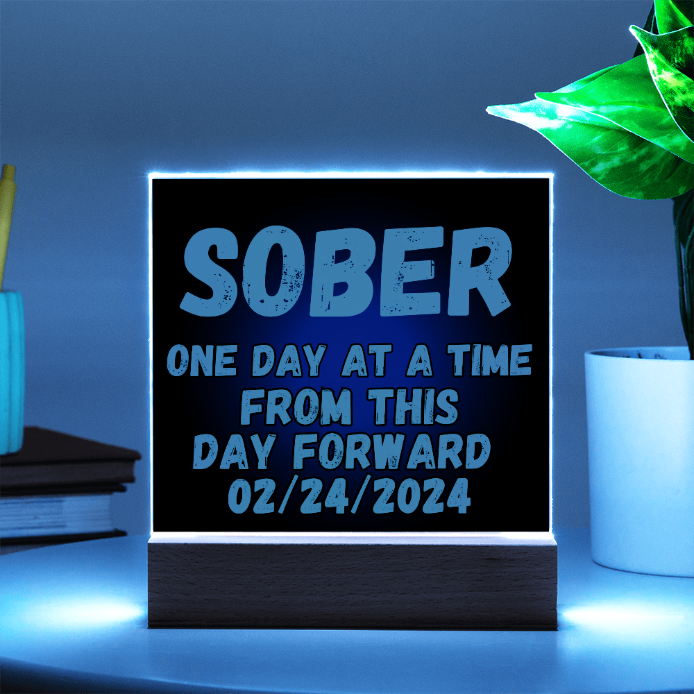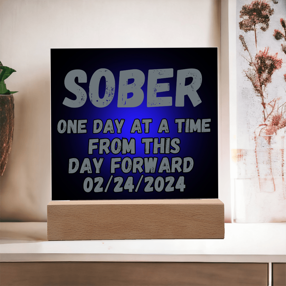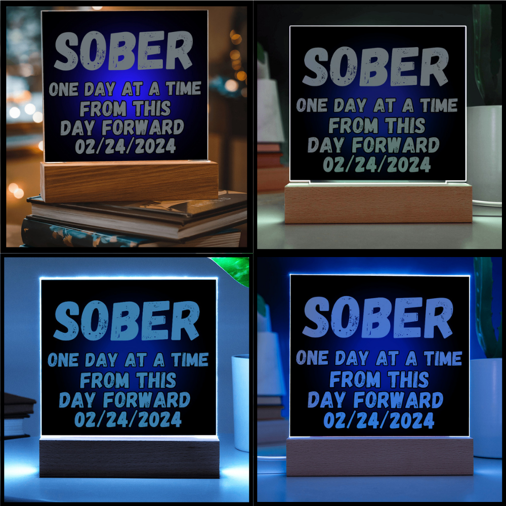 ✨ This premium acrylic LED plaque is the perfect way to honor a recovery journey. Featuring the empowering message: